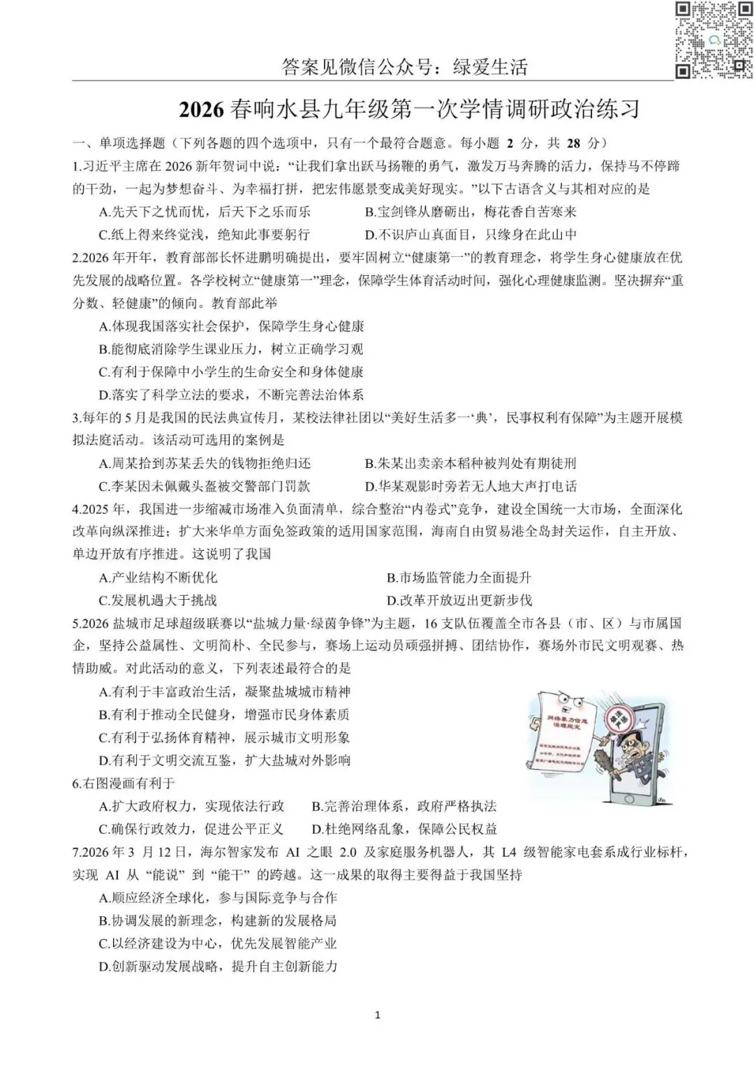 全部题目见题目群(题目群分:家长群、教师群),全部答案见答案群。不在群中的先加本文文末预备群。需要试卷听力音频请咨询您在的绿爱群。