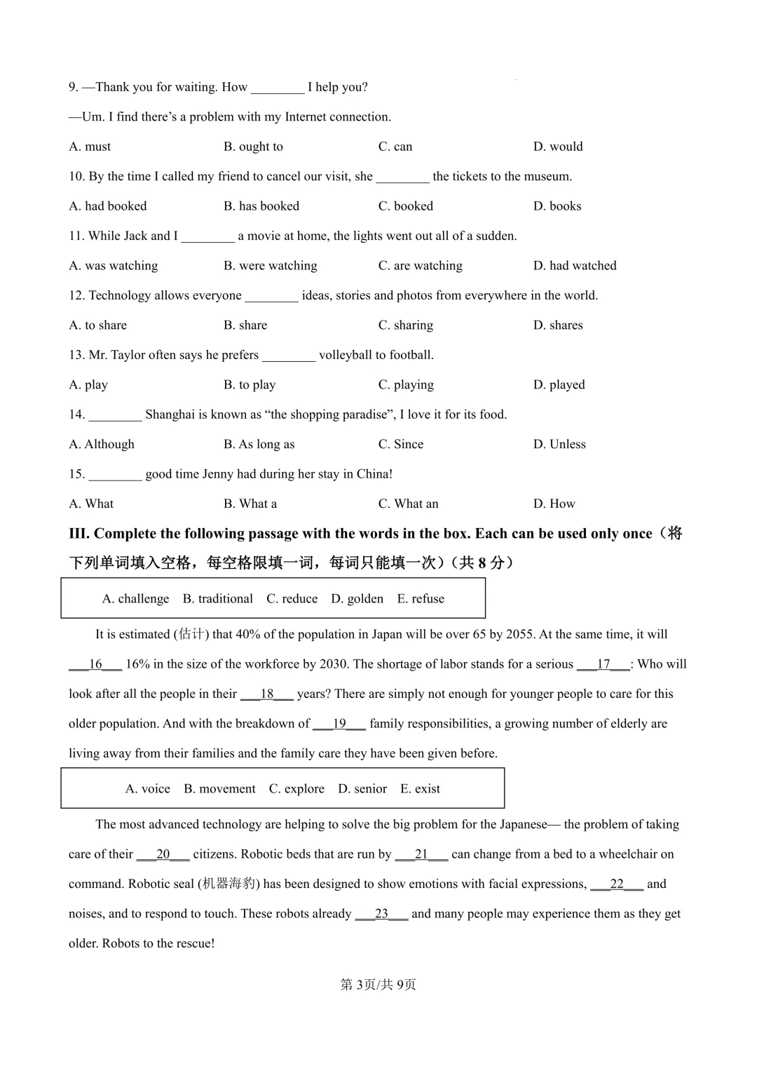 2025届上海市闵行区初三二模英语试卷(原卷版+解析版)
