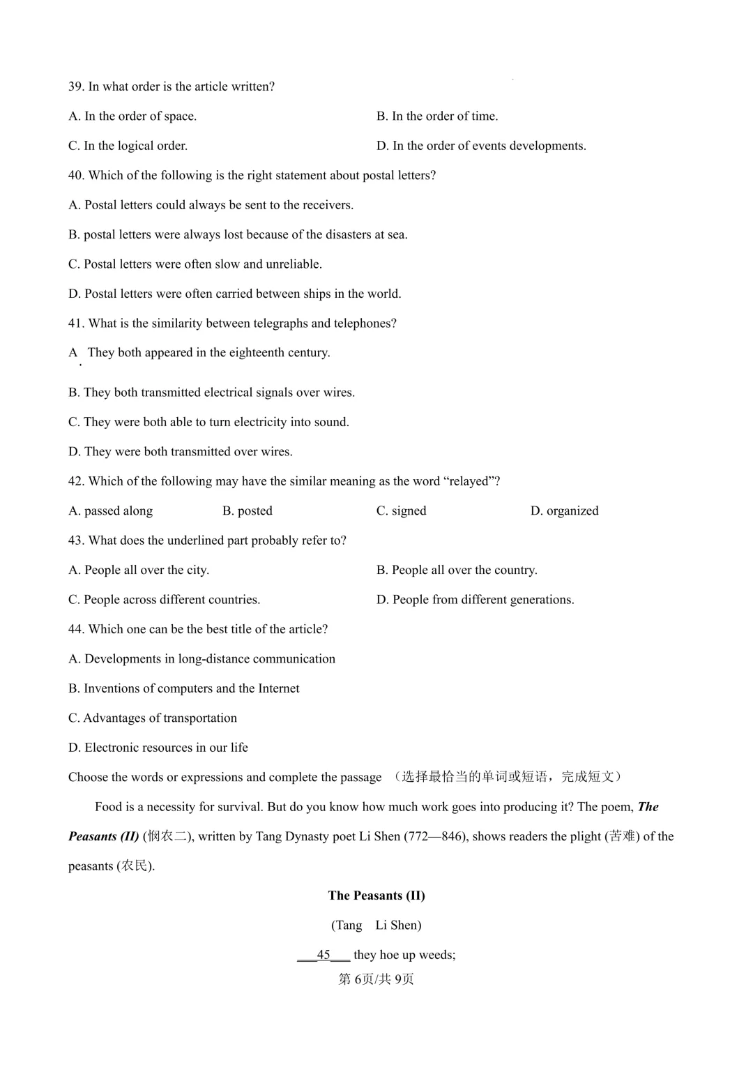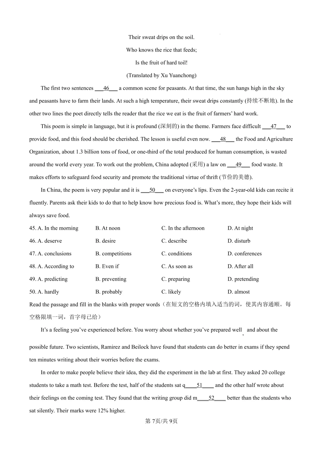 合肥市瑶海区一模试卷及答案含听力(全科)