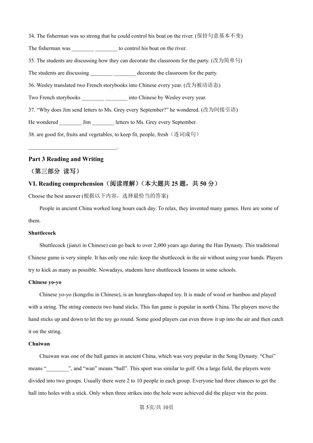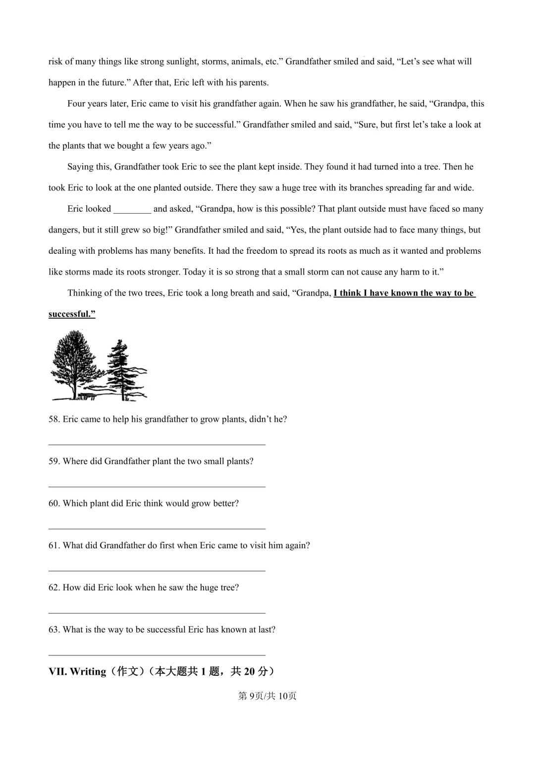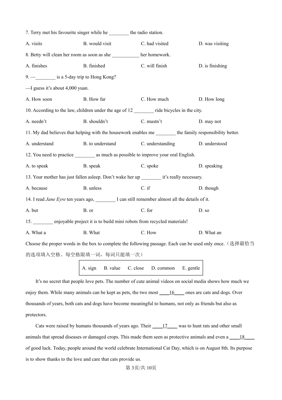 合肥市瑶海区一模试卷及答案含听力(全科)