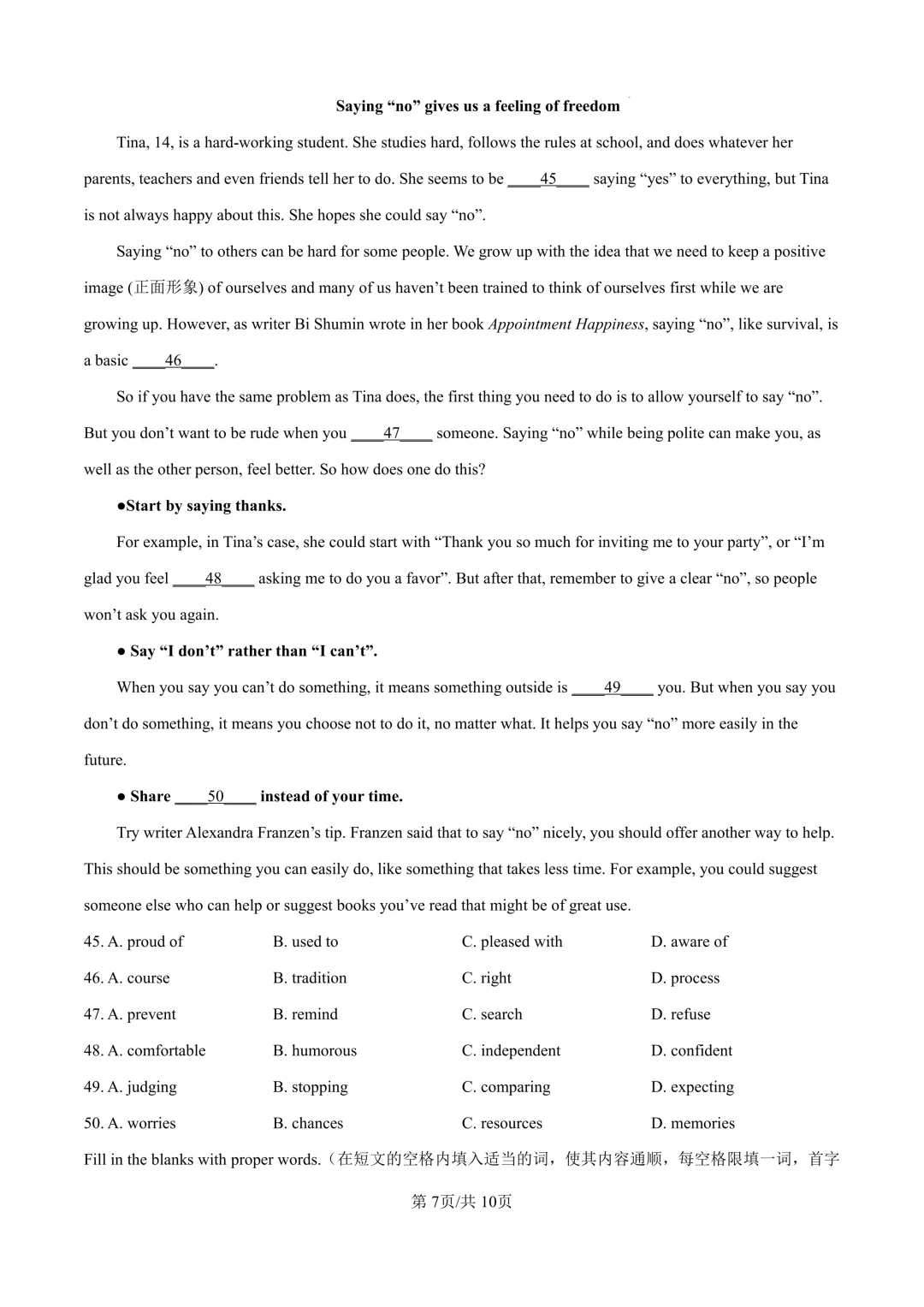 26年春七年级下册人教版英语第一次月考试卷含答案,电子版可打印