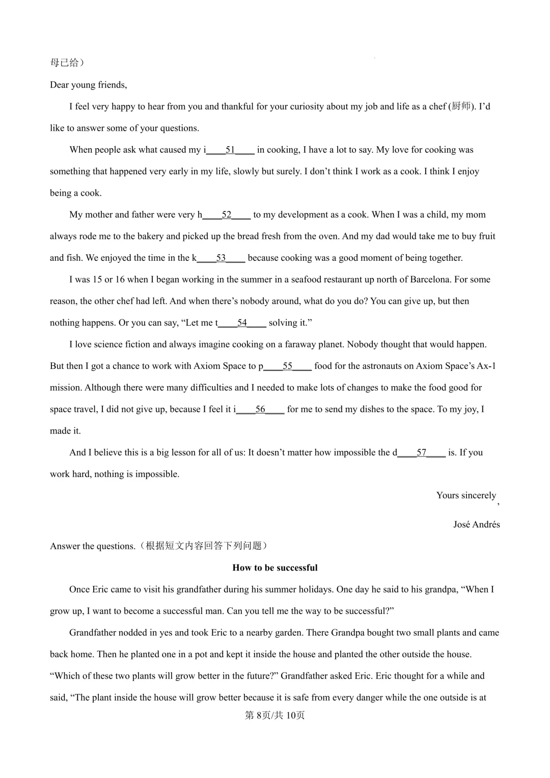 江西八校2026届高三4月联考英语试卷~