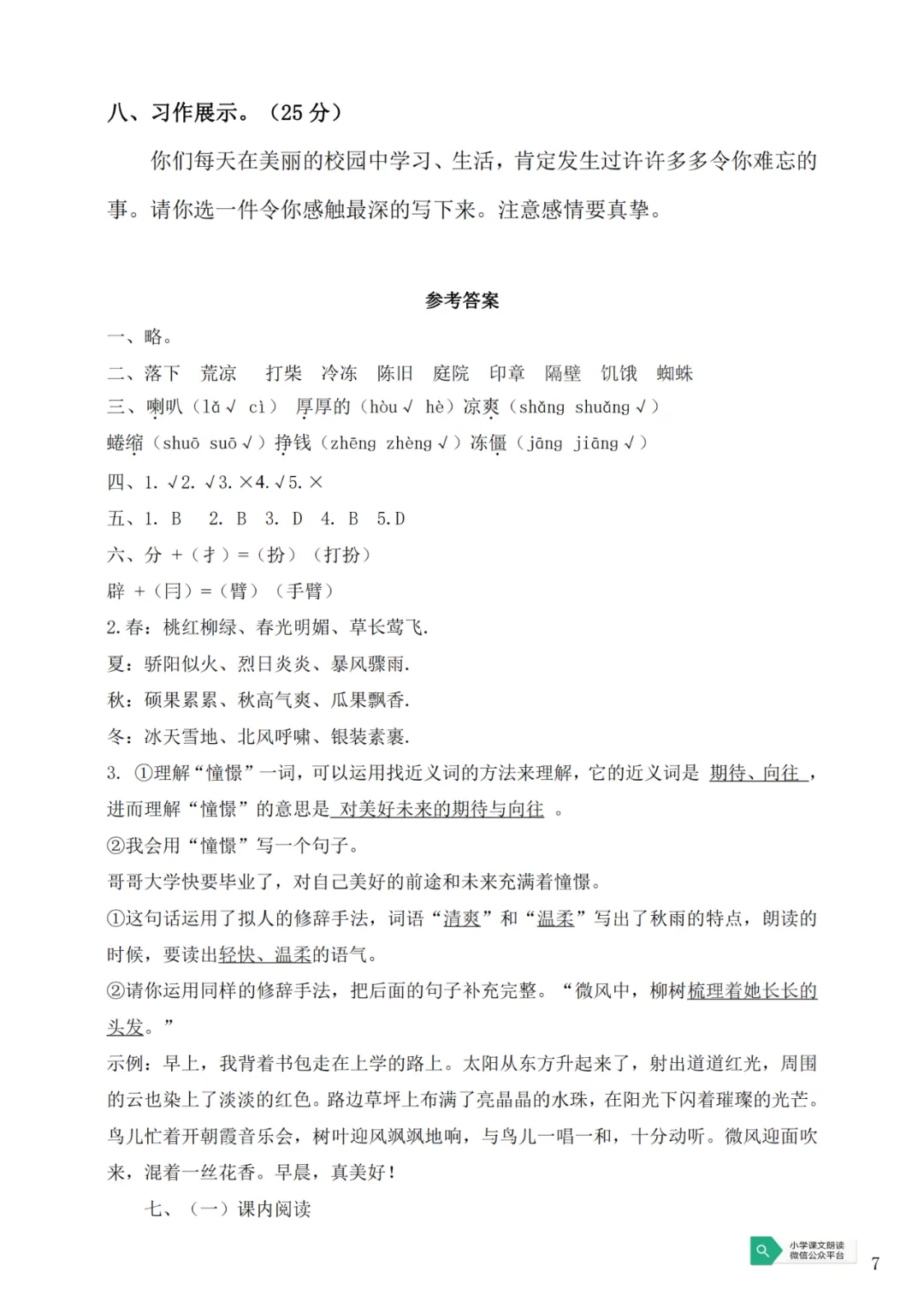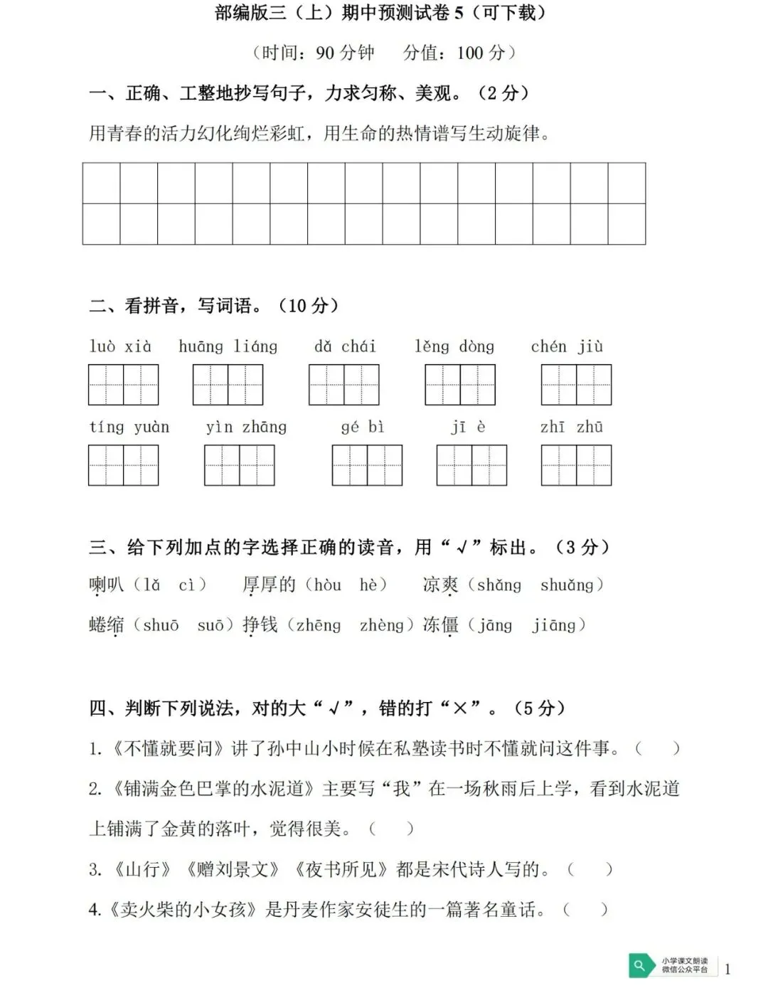 部编版三(下)第一单元测试卷(可下载)
