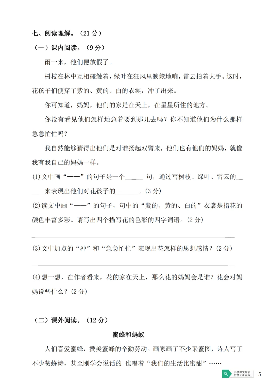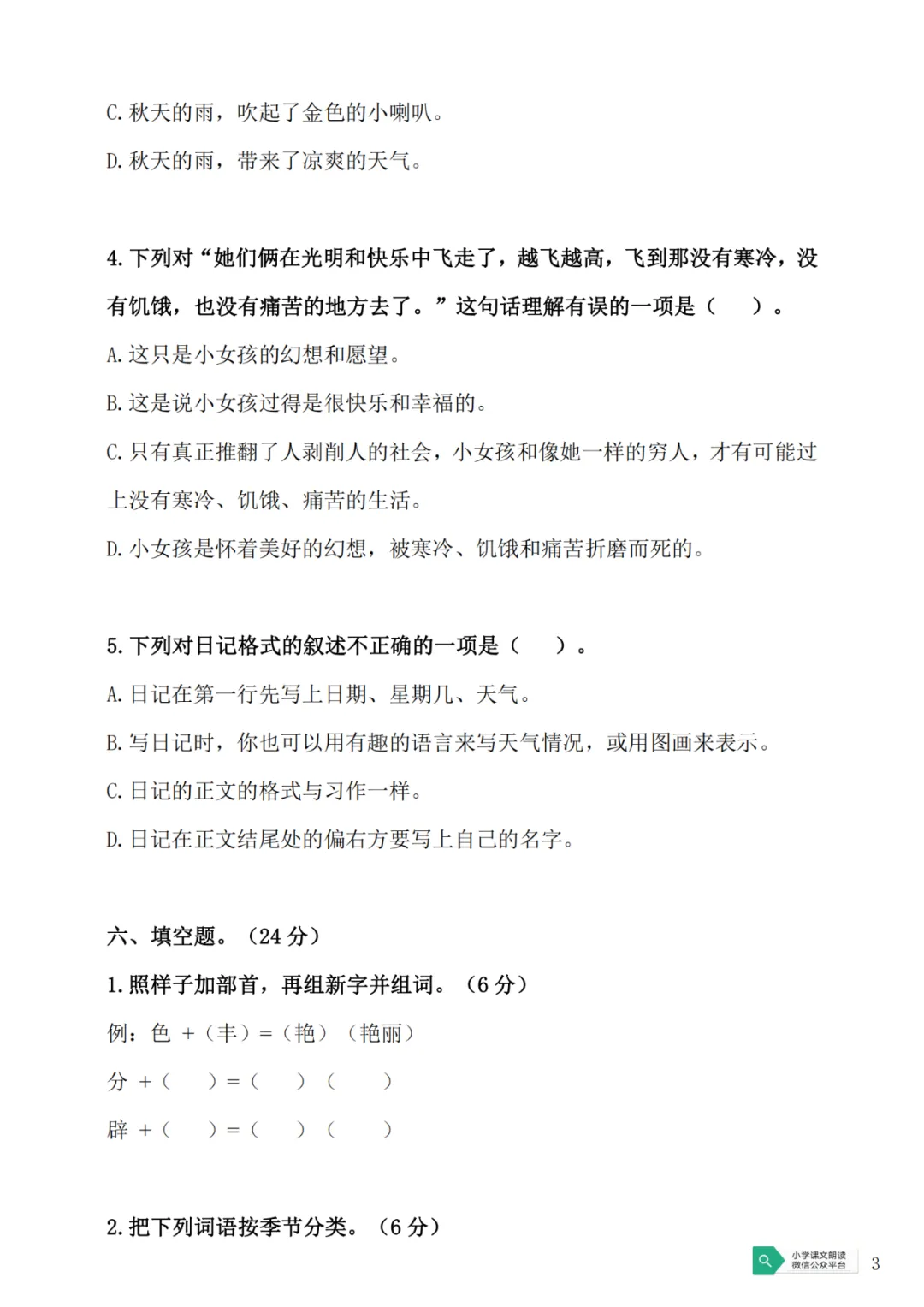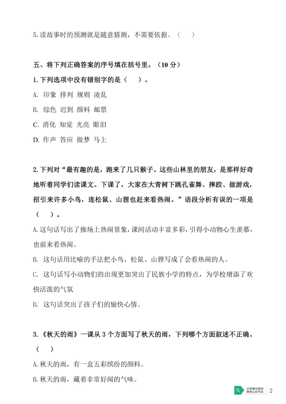 >部编版三(上)期中预测试卷5(可下载)