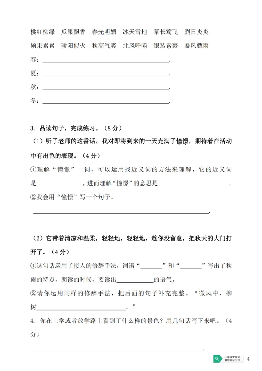 部编版四年级上册第一单元测试卷及答案(可下载)
