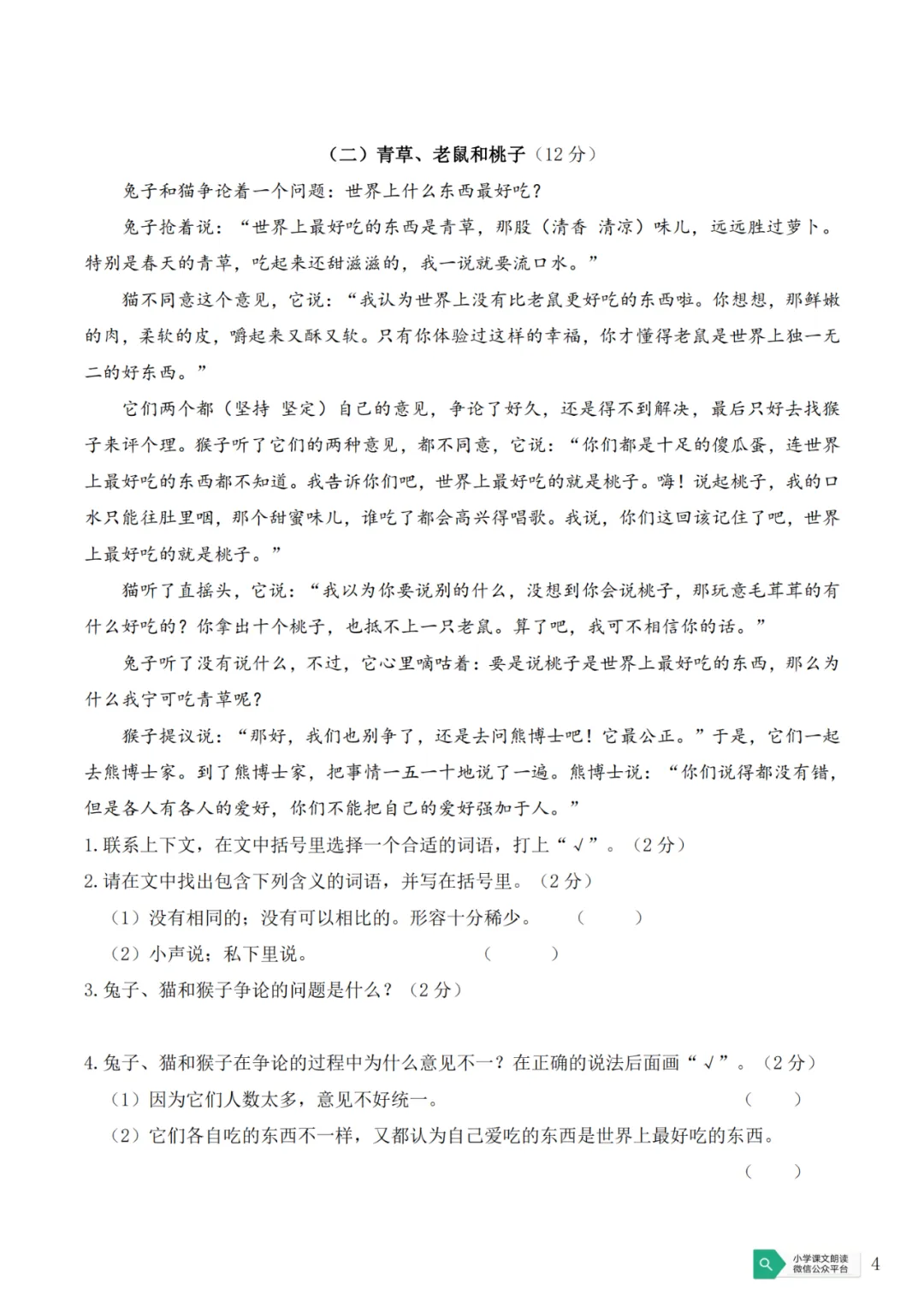 合肥市瑶海区一模试卷及答案含听力(全科)