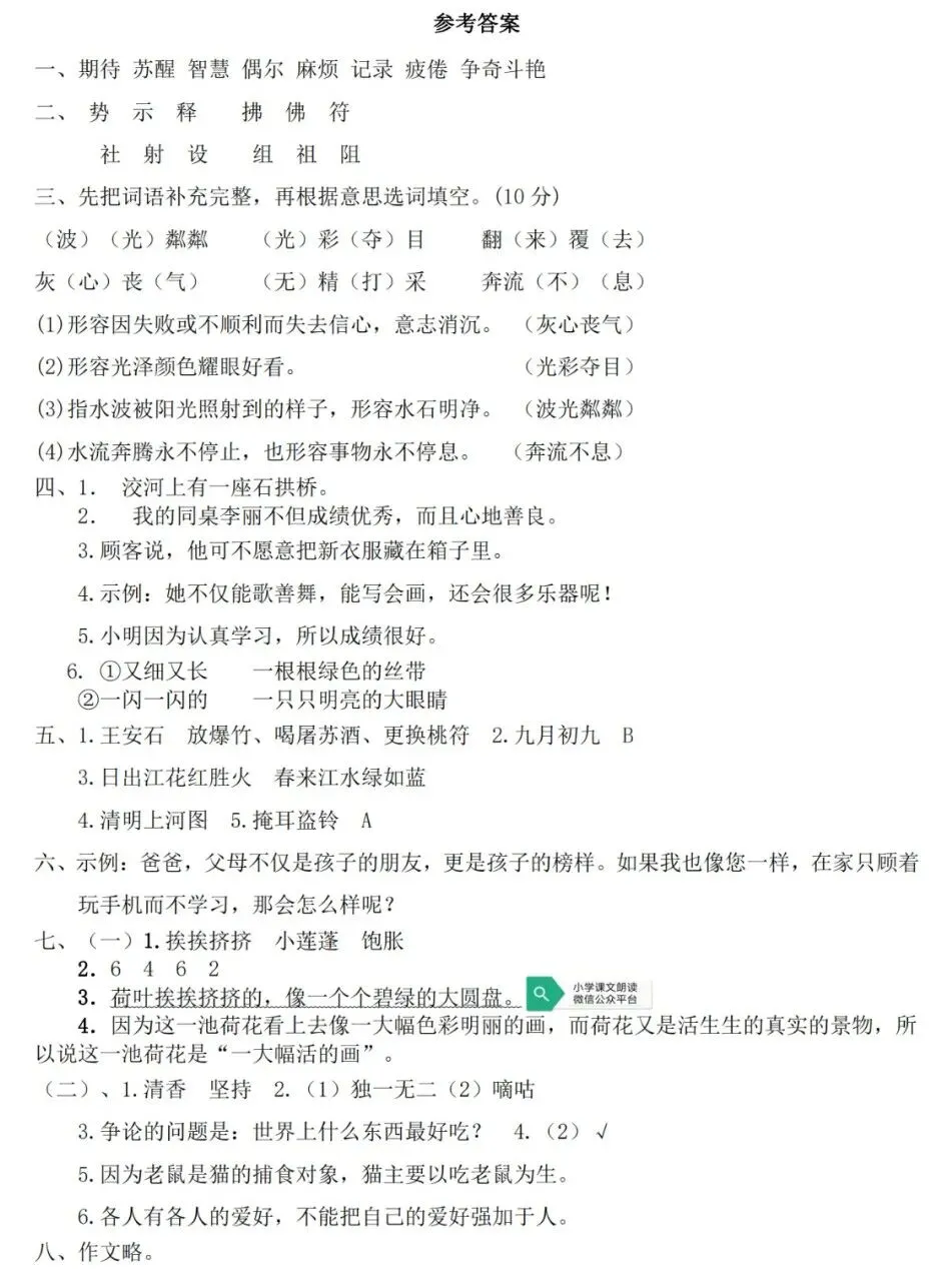 部编版四年级上册第一单元测试卷及答案(可下载)