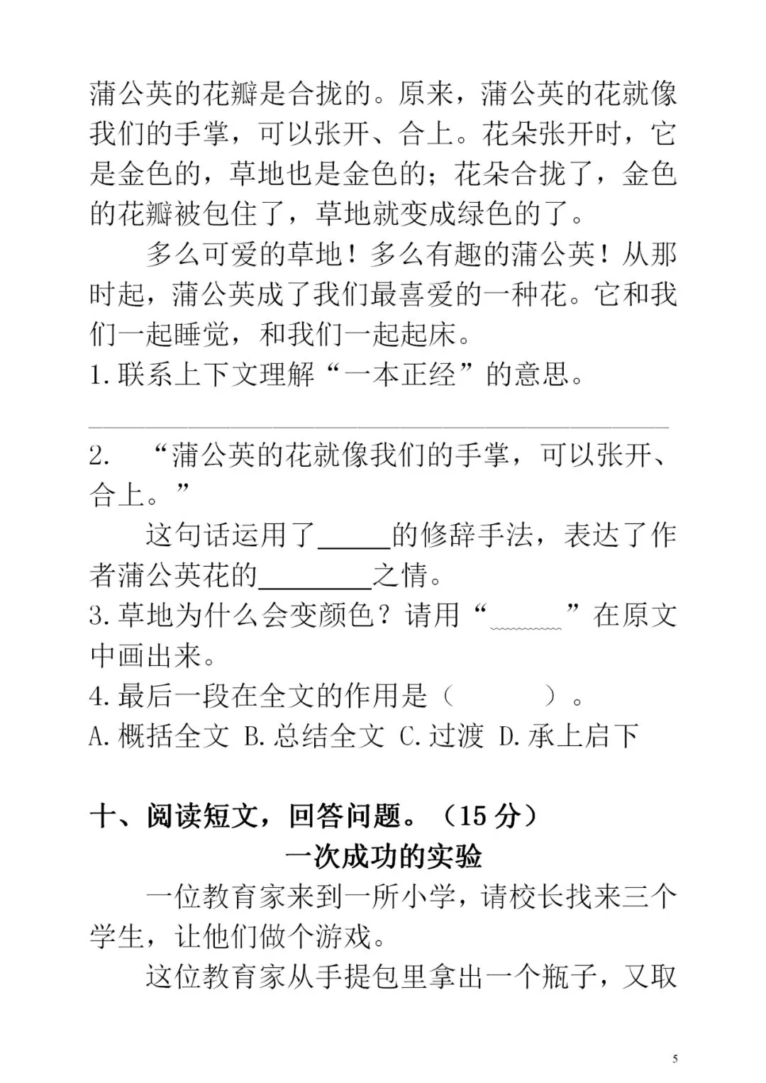 部编版三(上)期中预测试卷5(可下载)