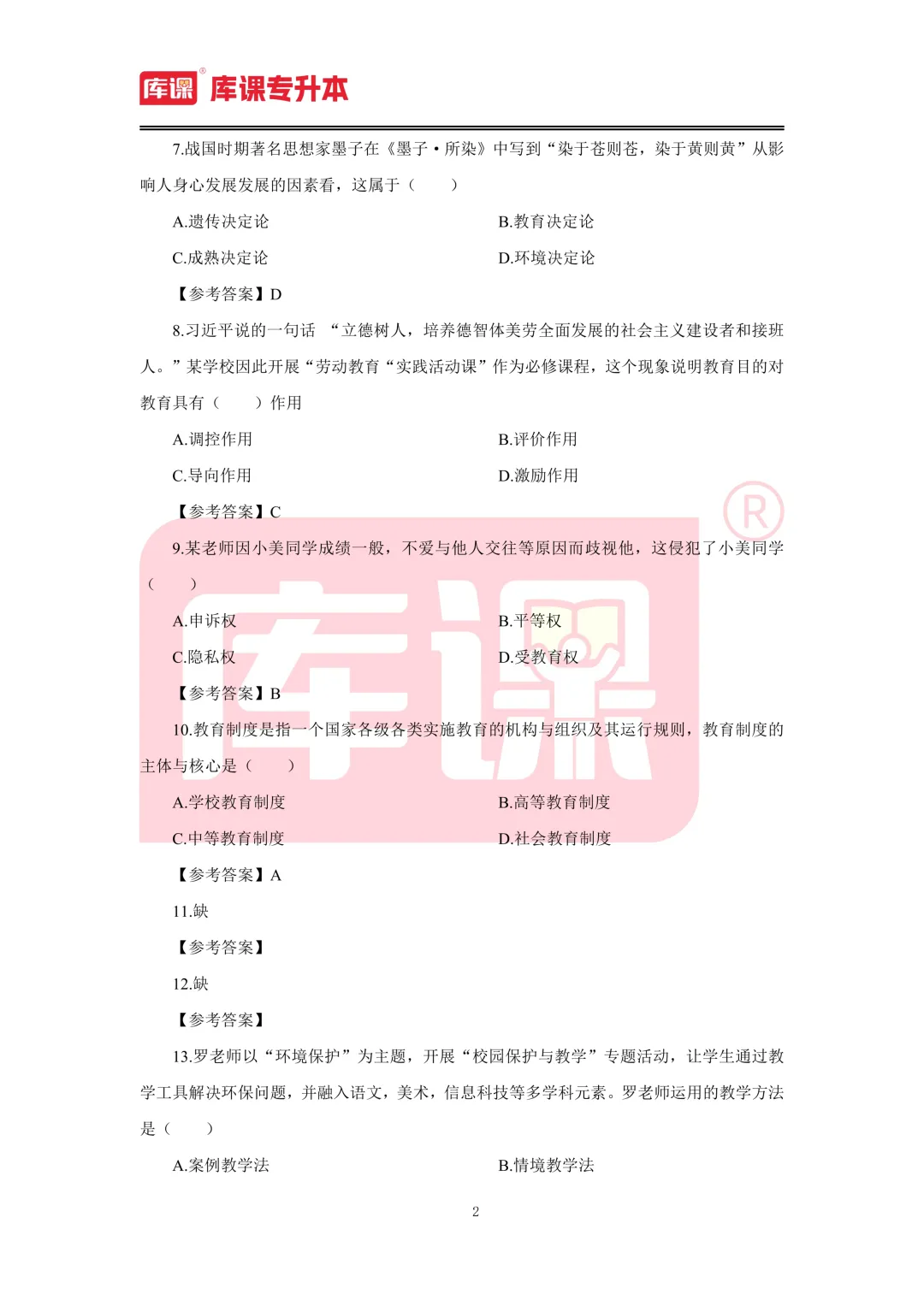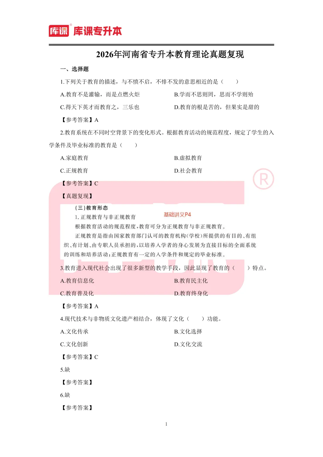 >2026年河南专升本【教育理论】考试真题汇总(回忆版复现)
