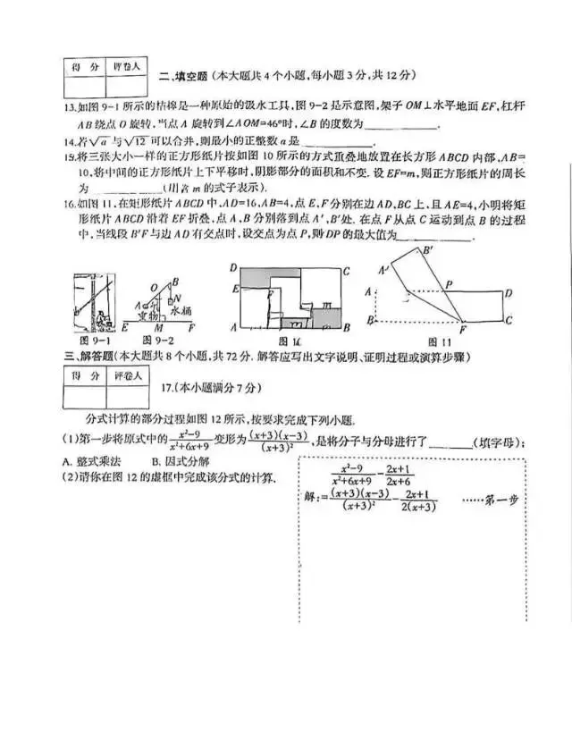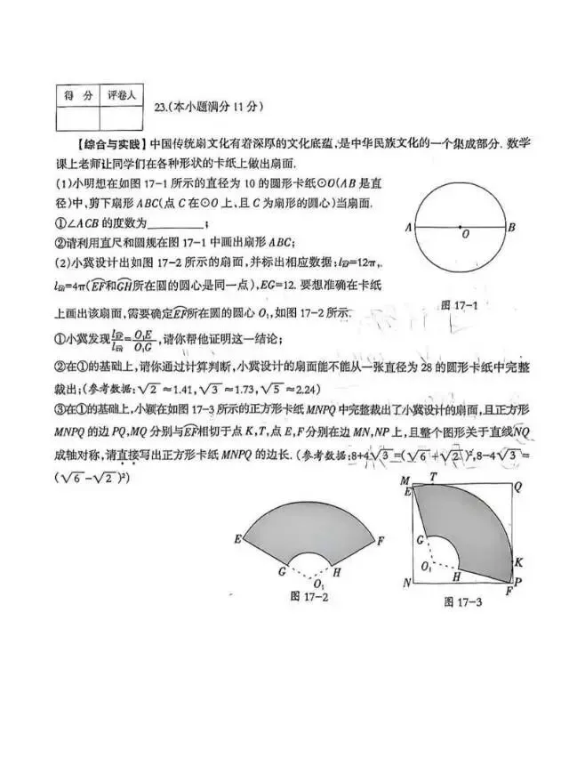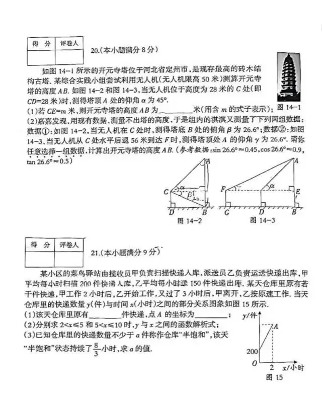 26.3河北省中考石家庄裕华区一模数学试题及答案