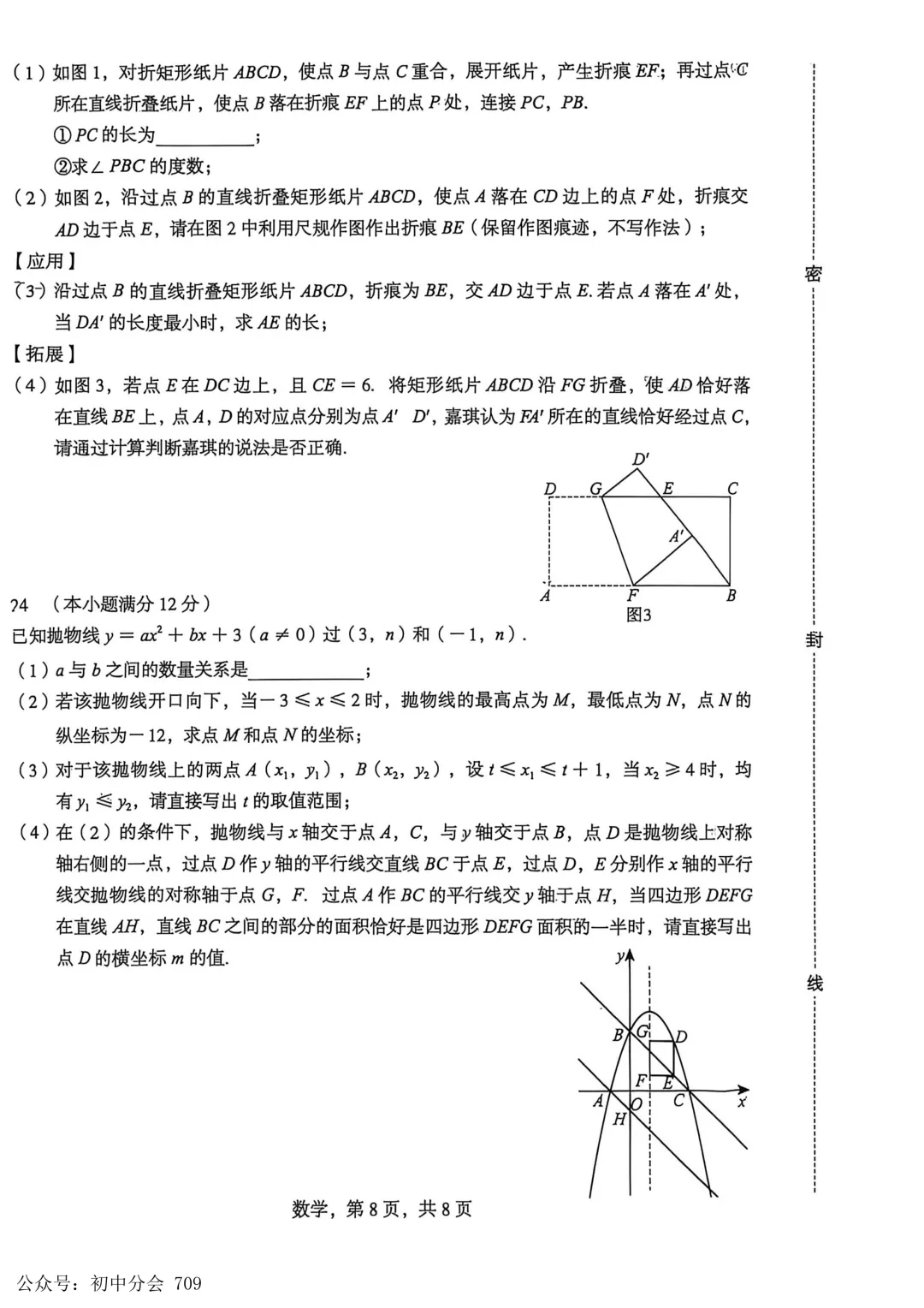 2026.3河北省初中学业水平摸底考试数学试卷*2及答案