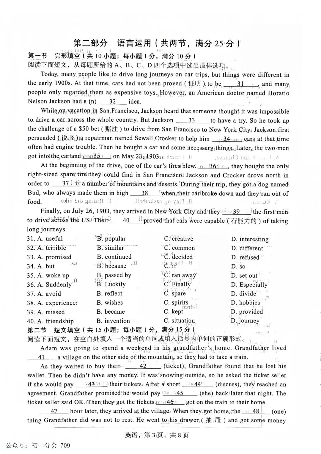 2026.3九年级中考摸底检测试卷及答案(全科含听力)