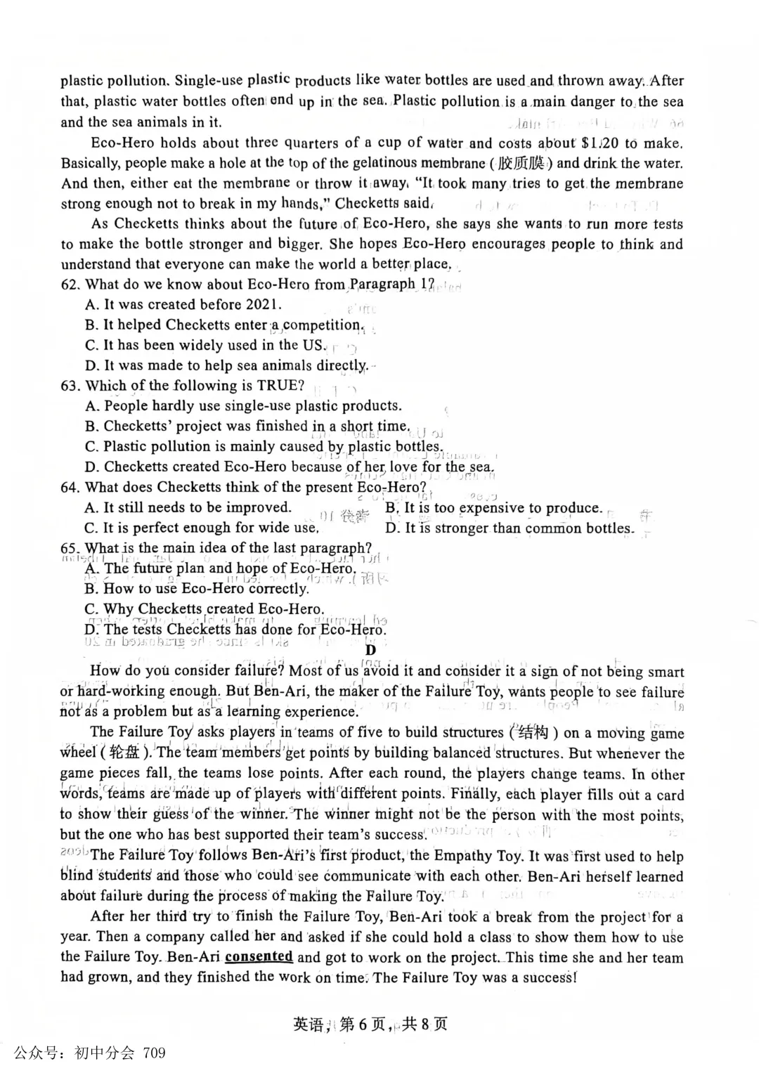 2026.3裕华区中考一模试卷及答案(全科含听力)