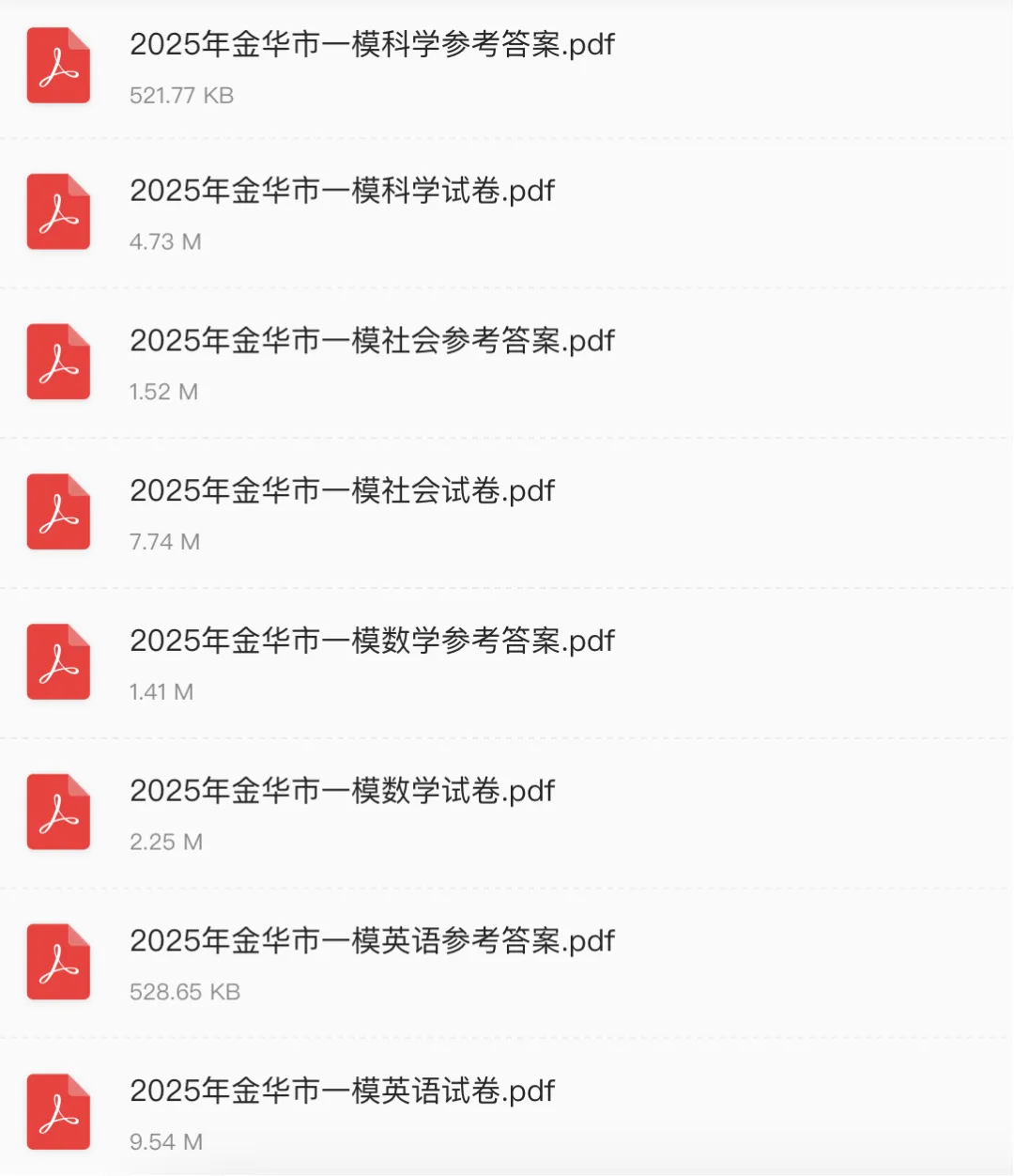 各位初三家长、同学们看过来✨ 备考冲刺关键期,真题加持才高效!今天给大家整理好了2025年金华市一模试卷+答案解析,搭配完整详细解析,免费分享给大家~