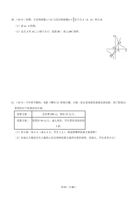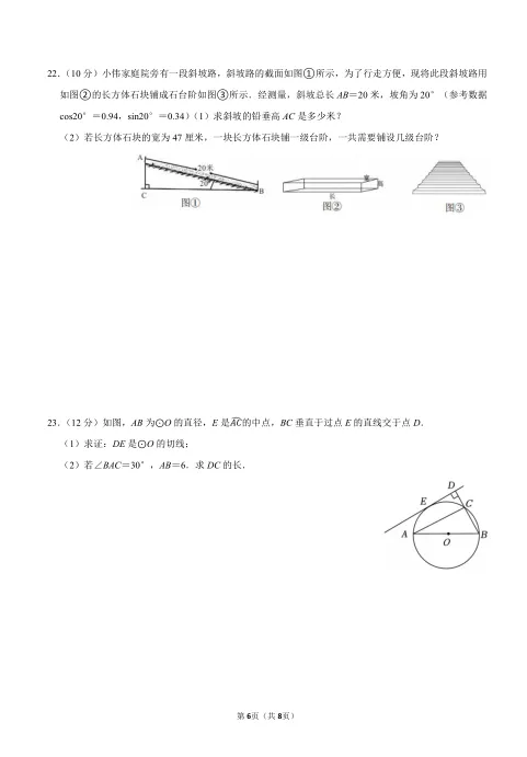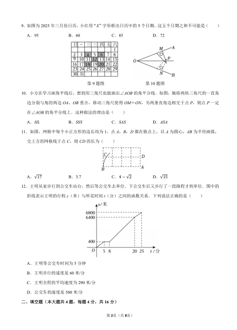 核心考点:一次函数与实际情境结合(第12题行程问题);方案选择与方程应用(第21题购票优惠)、解直角三角形实际应用(第22题斜坡台阶问题)。命题特点: 这部分题目强调数学建模能力,要求学生将实际问题转化为数学问题,体现了新课标对“核心素养”的重视。