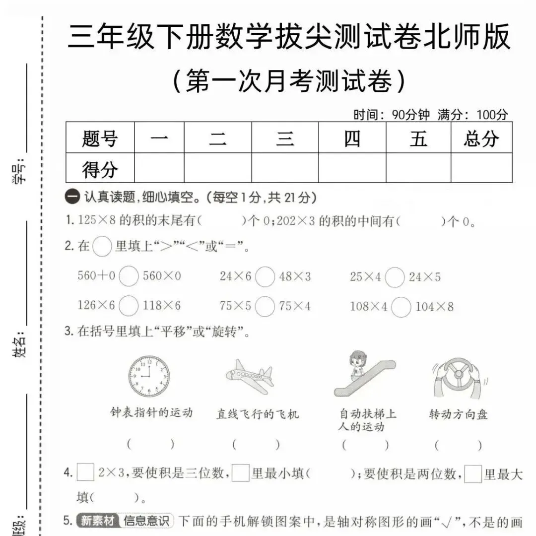 2026春三年级下册北师大版数学,第一次月考检测试卷2套含答案,可打印