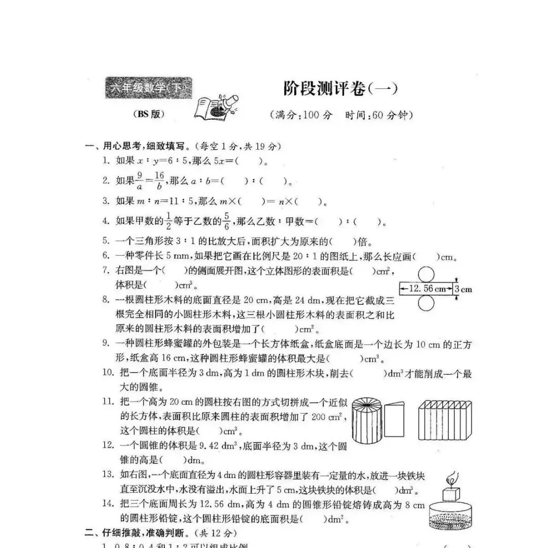 2026春六年级下册北师大版数学,第一次月考检测试卷2套,含答案可下载打印