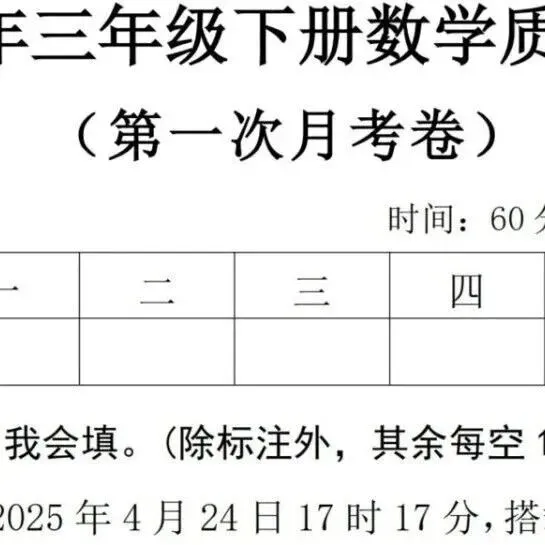 2026春三年级下册人教版数学《第一次月考质量检测卷》(含答案),电子版可下载打印