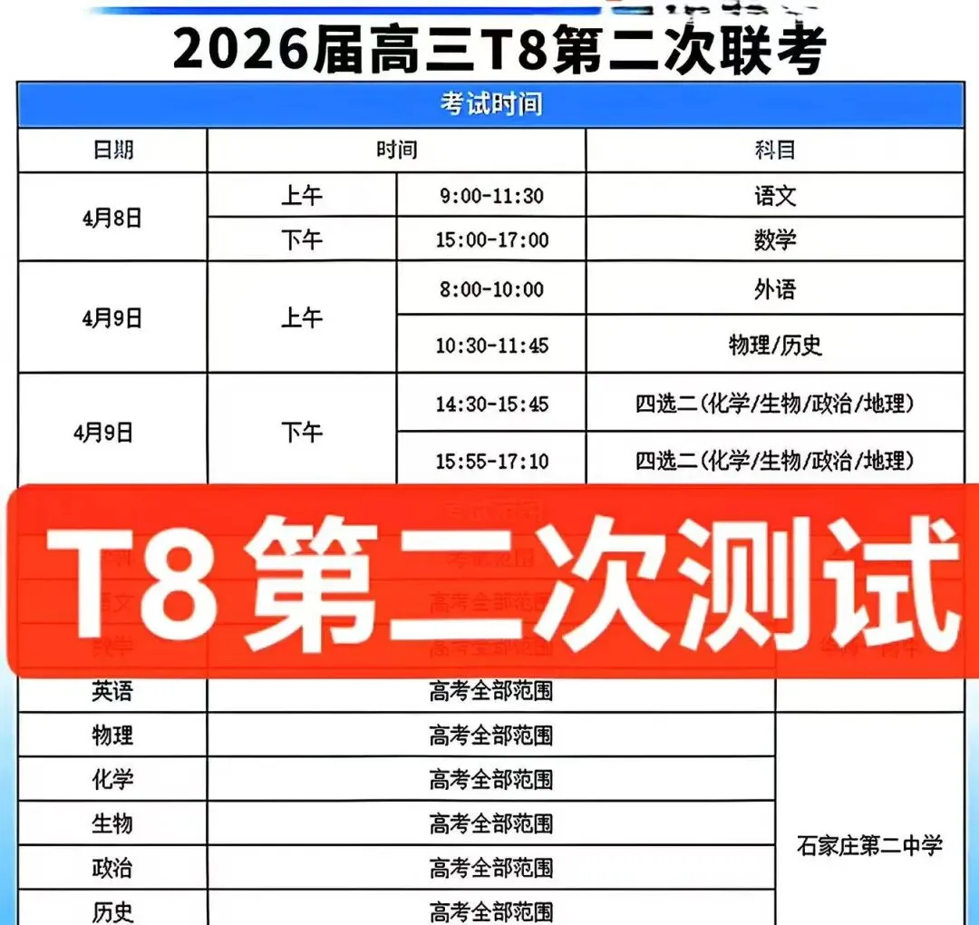 当前位置:首页>考研真题>【试卷+答案】4月8日八省联考2026届高三(T8)第二次联考全科汇总!