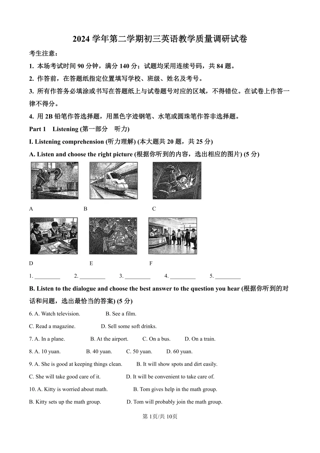 26年初三杨浦区二模真题试卷