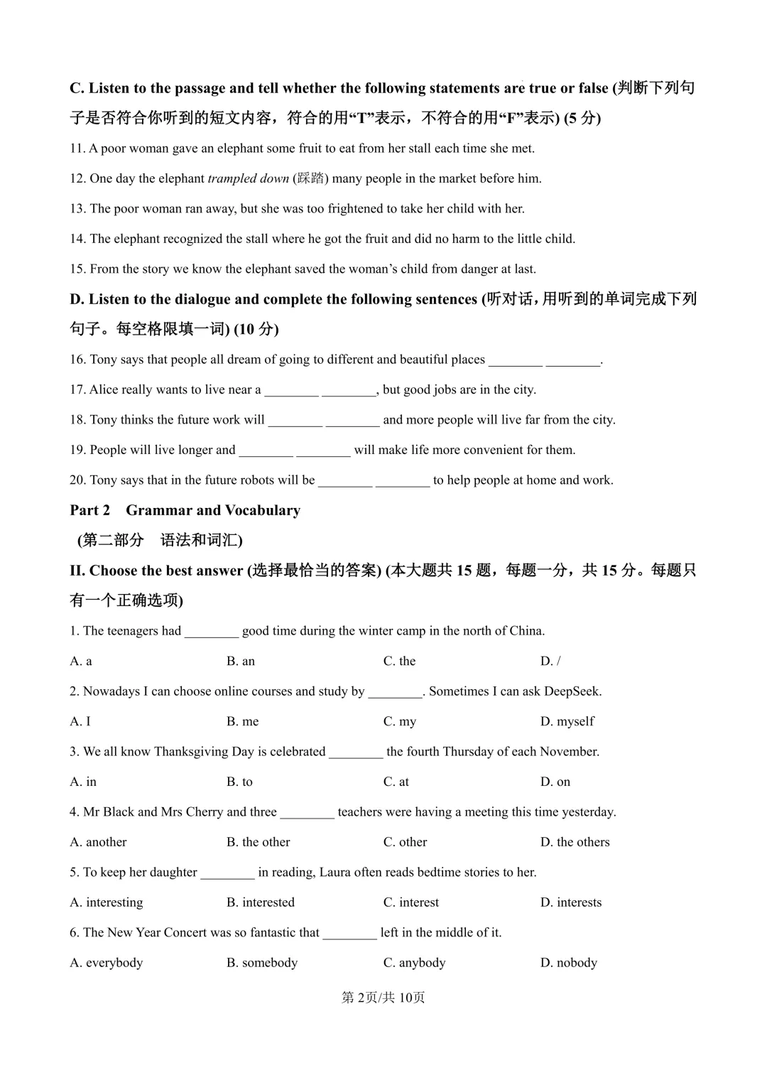 >2025届上海市长宁区初三二模英语试卷(原卷版+解析版)