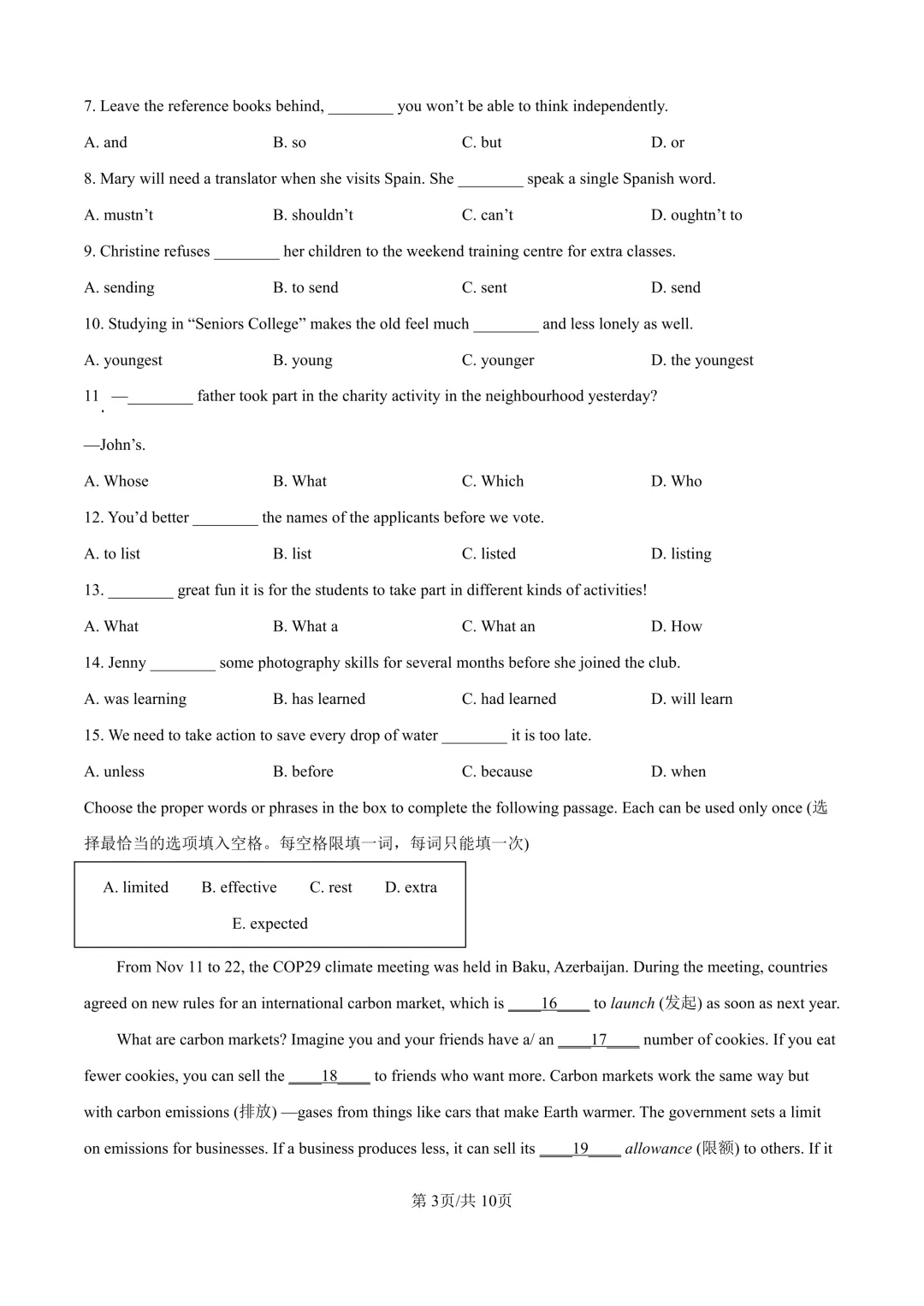 2025届上海市长宁区初三二模英语试卷(原卷版+解析版)