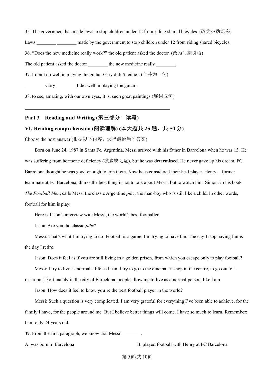 唐山二十一中七年级语文月考试卷!需要答案添加微信!