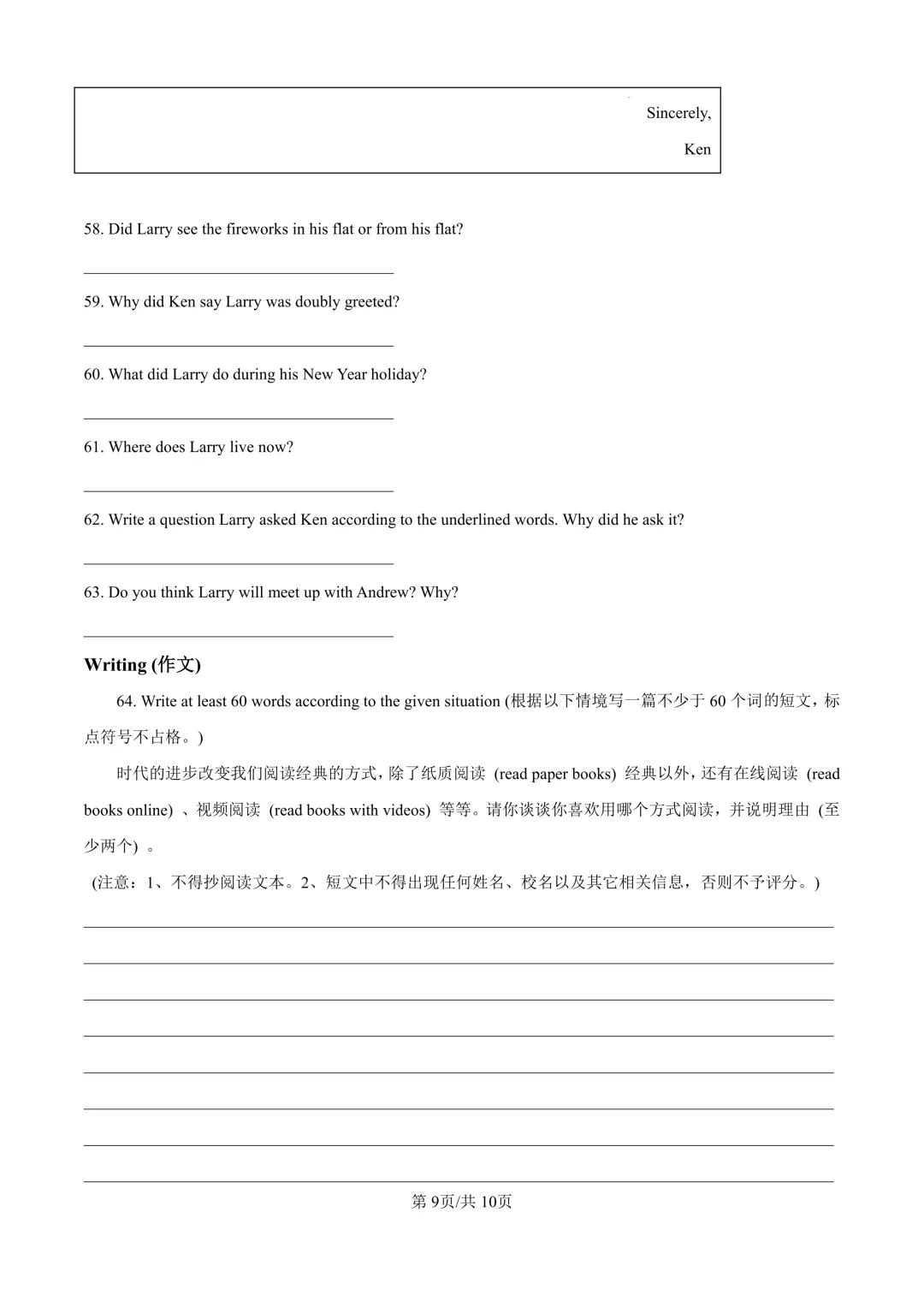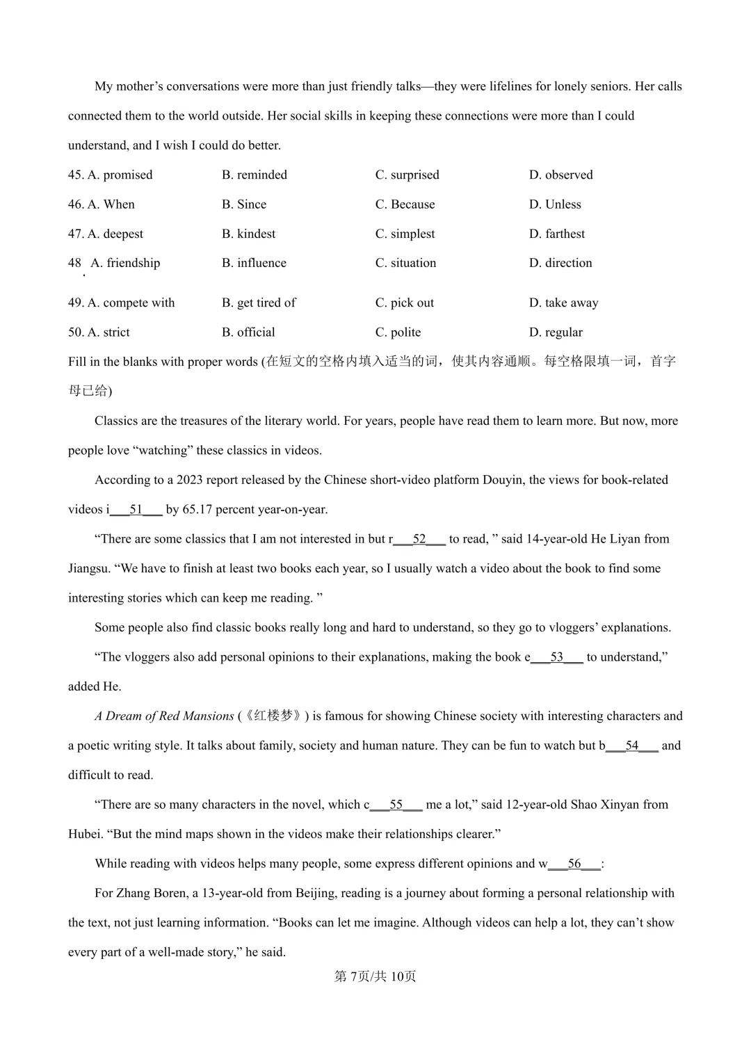 【夏老师阅读与表达】中考试卷资料分享