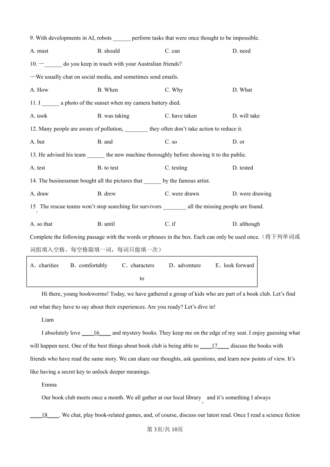 2025届上海市青浦区初三二模英语试卷(原卷版+解析版)