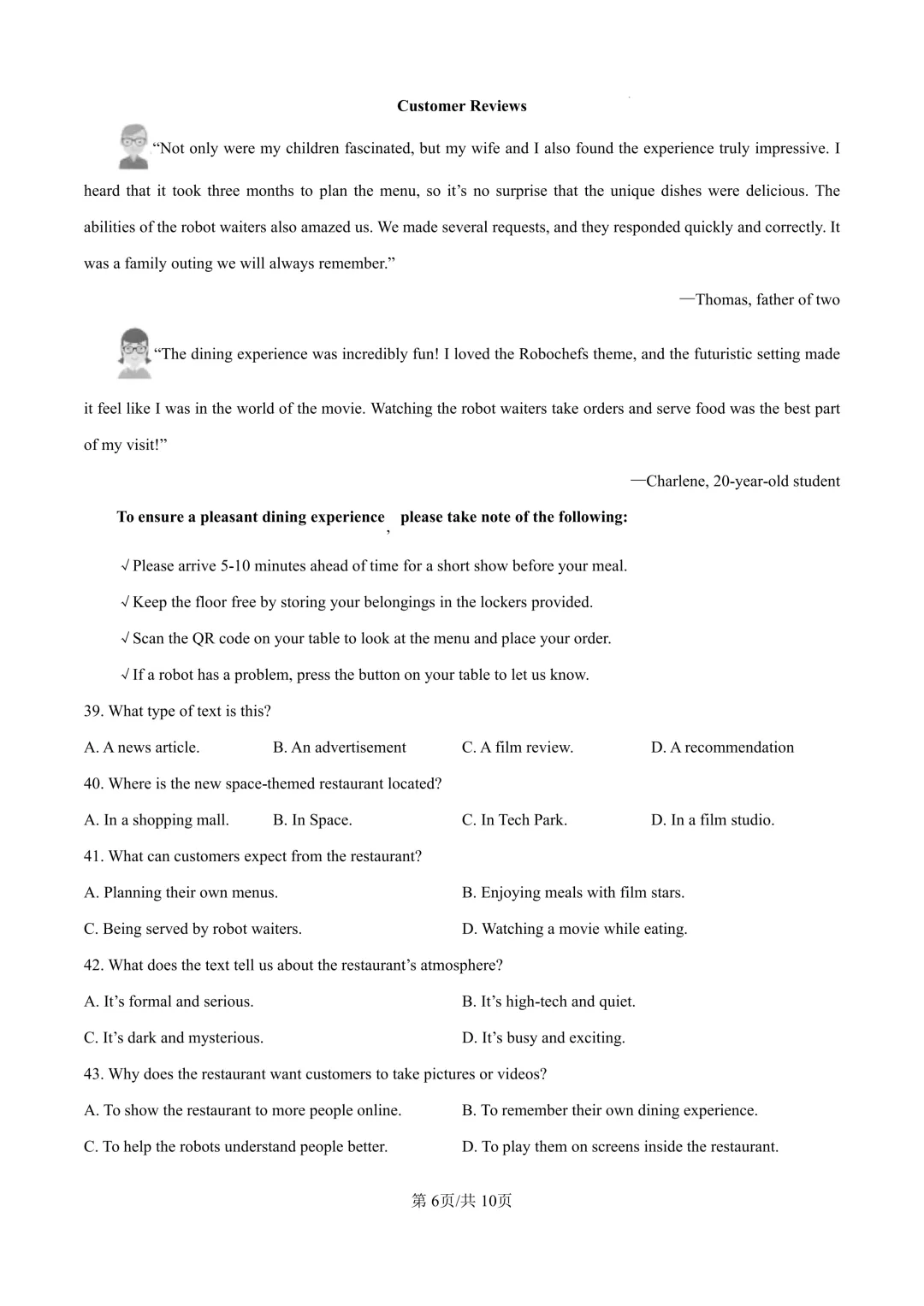 2025届上海市杨浦区初三二模英语试卷(原卷版+解析版)