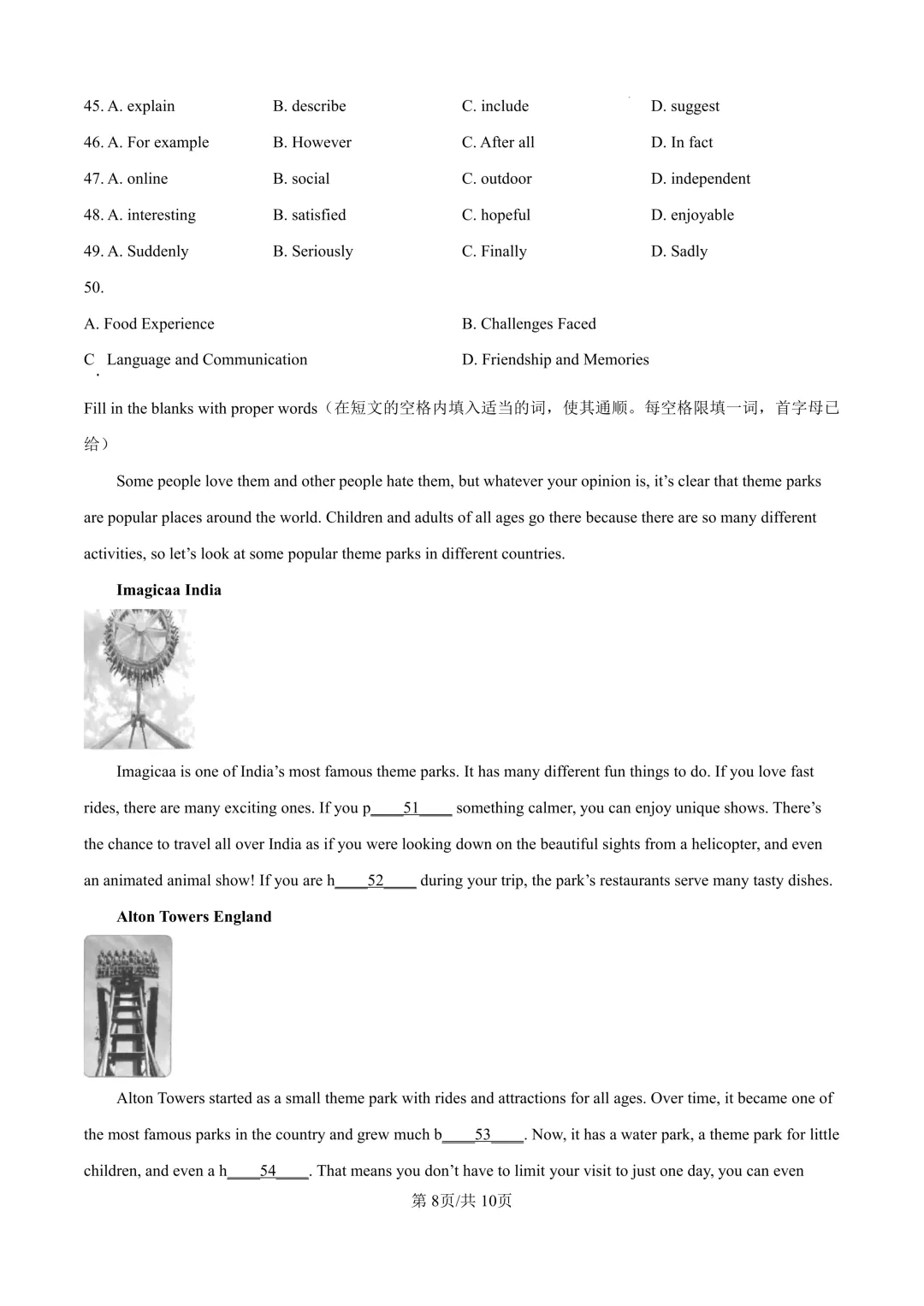>2025届上海市杨浦区初三二模英语试卷(原卷版+解析版)