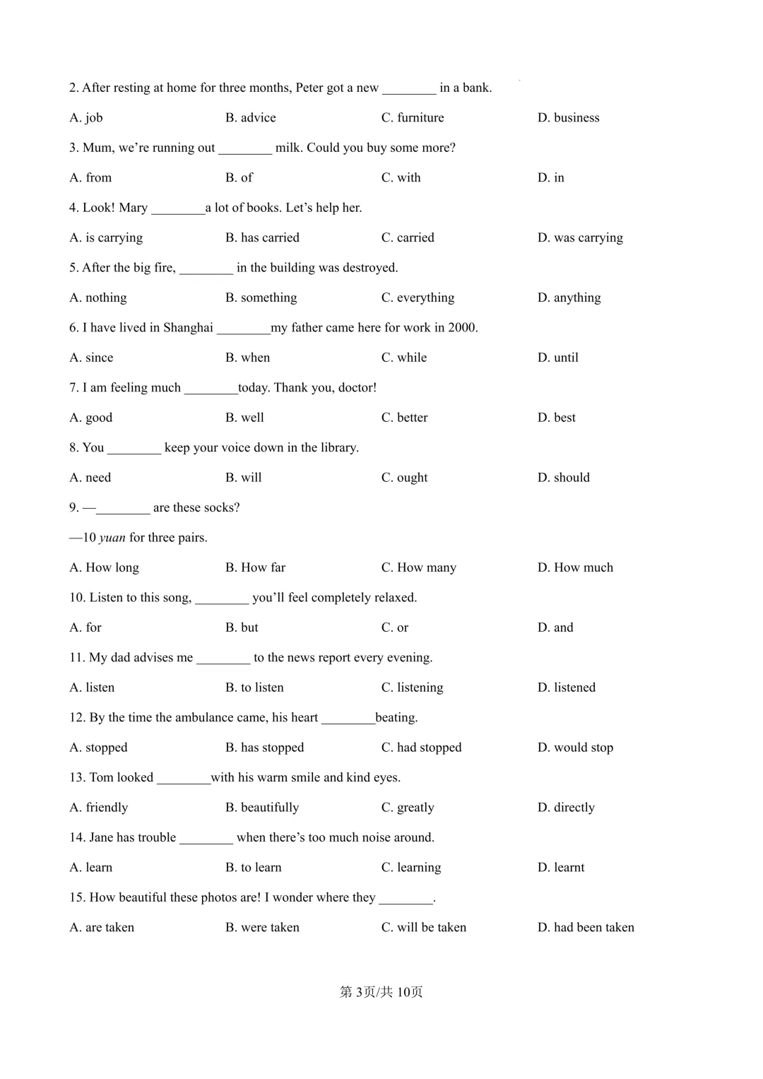 2025届上海市青浦区初三二模英语试卷(原卷版+解析版)