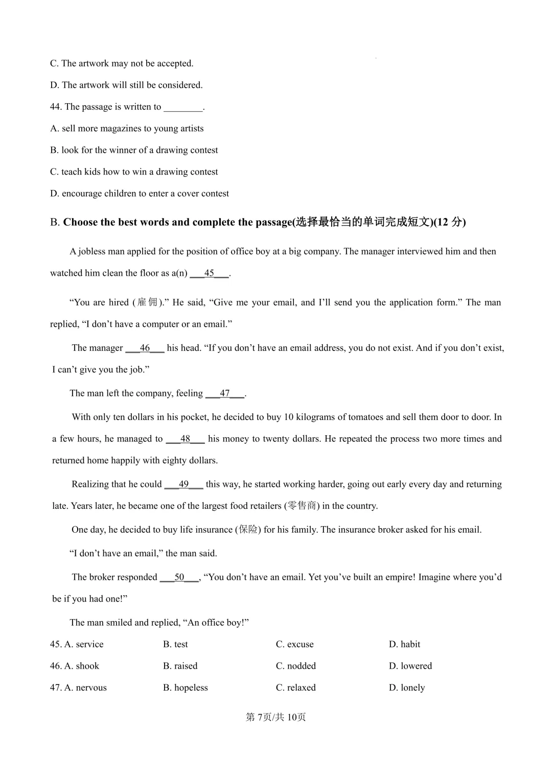 2025届上海市普陀区初三二模英语试卷(原卷版+解析版)