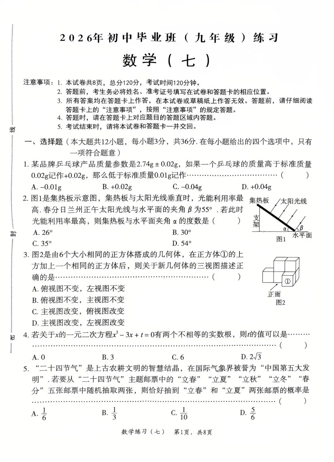2026无锡初三一模试卷
