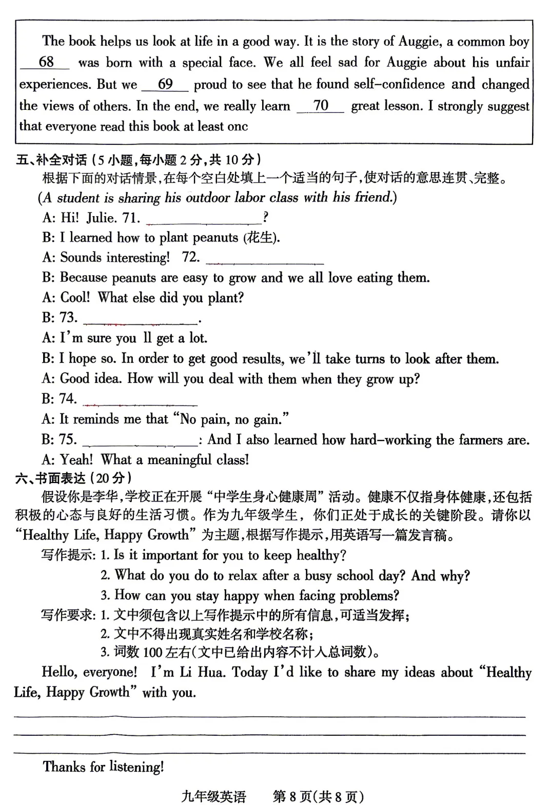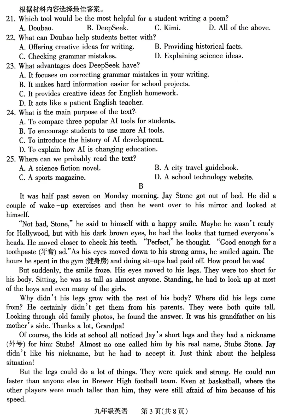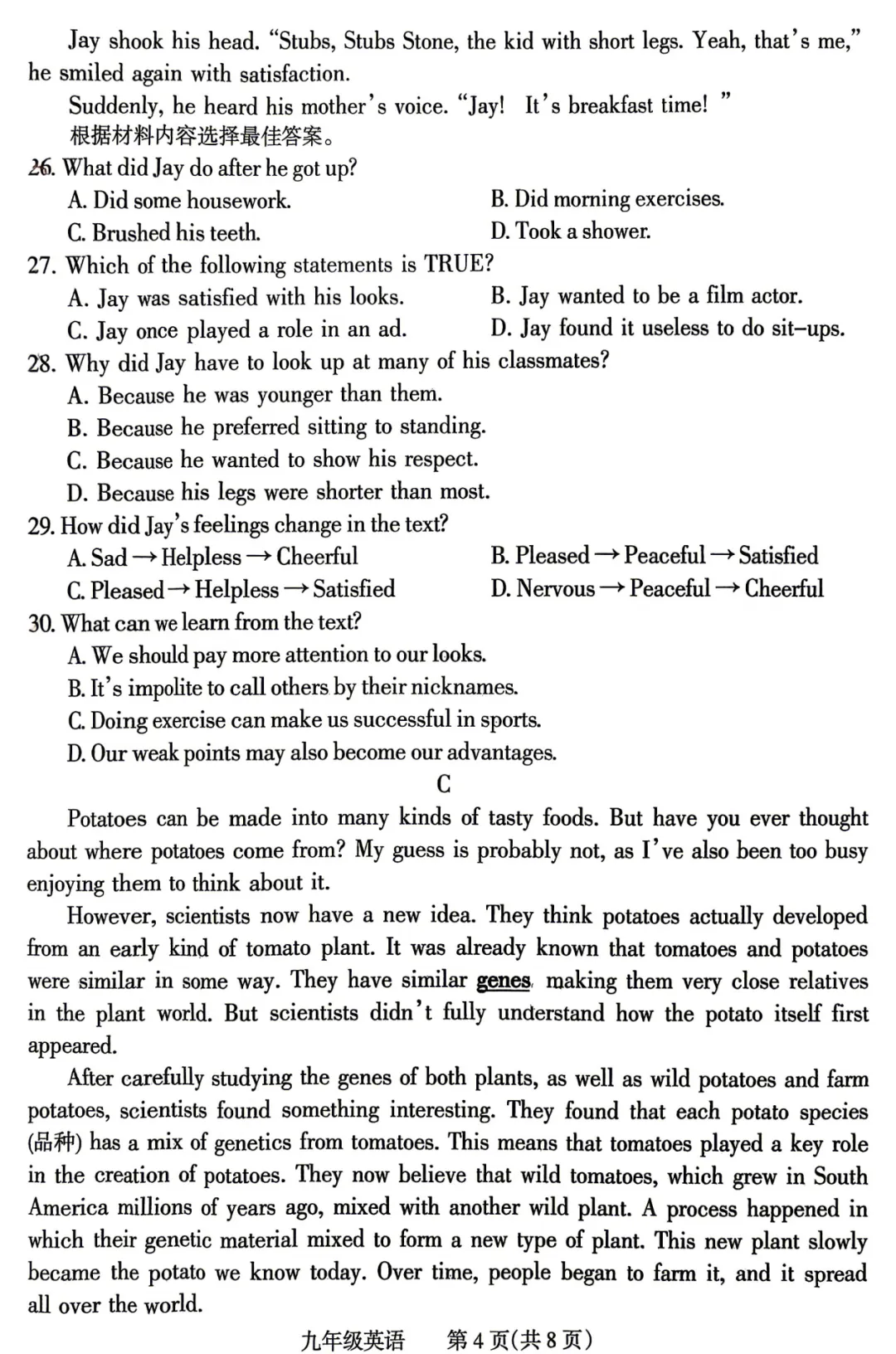 初中试卷:
