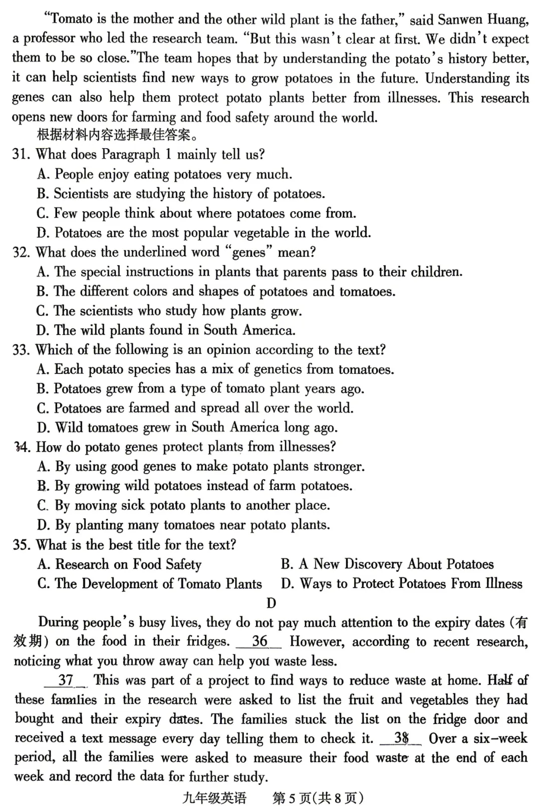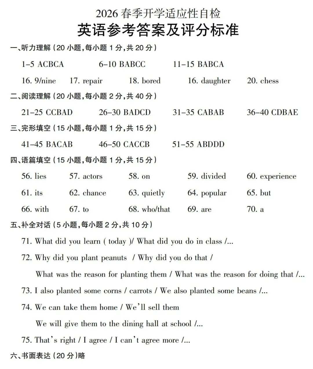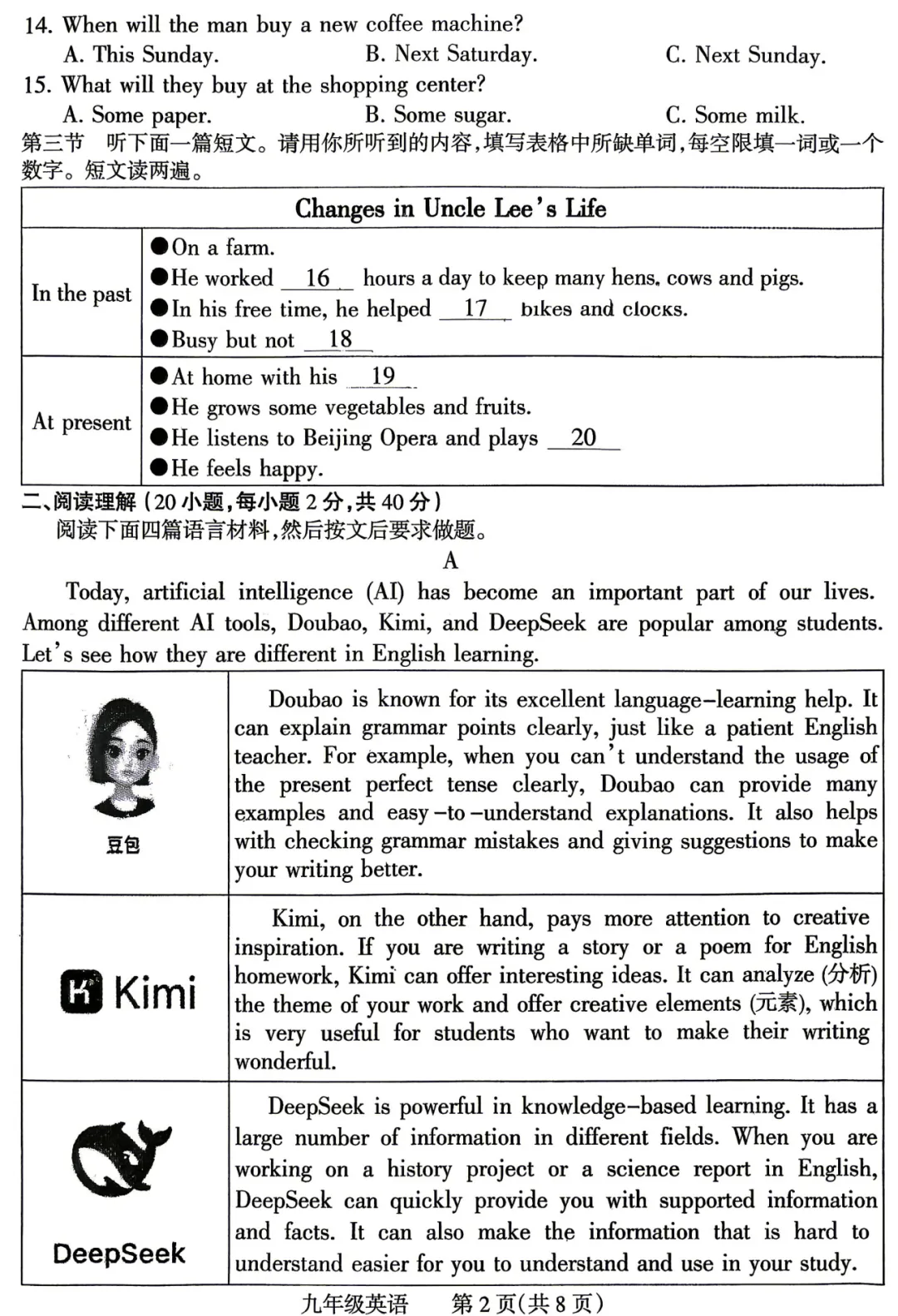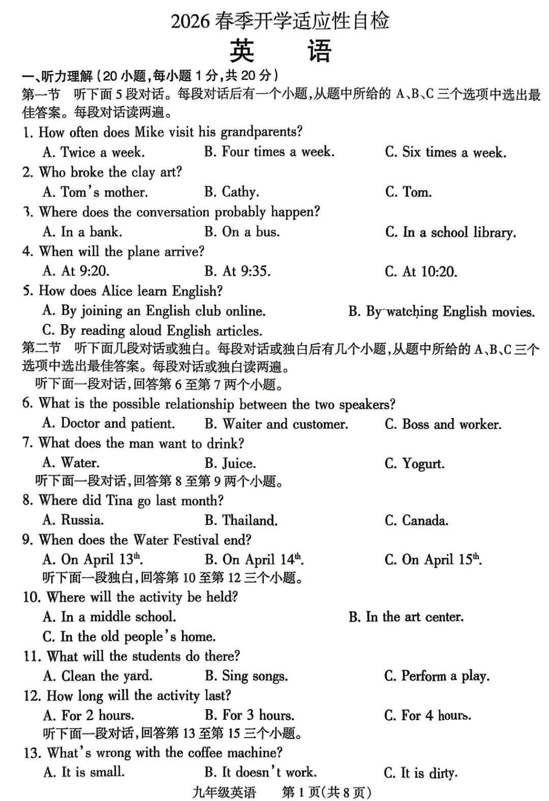 初中试卷: