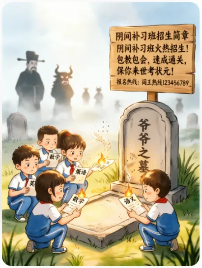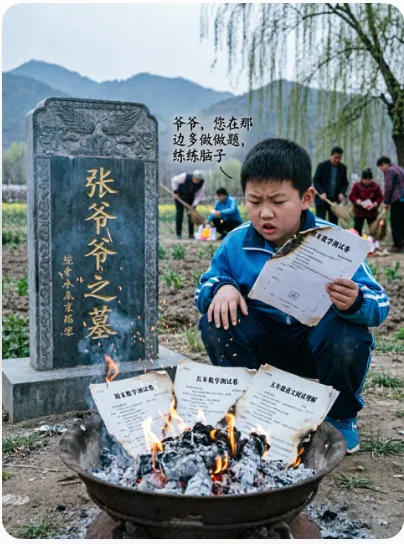 我们小时候扫墓,想的是贡品糖果;现在的孩子,第一反应是“输出作业”。