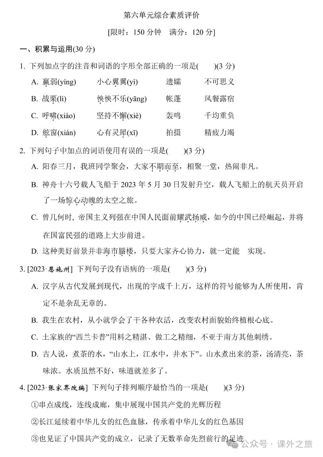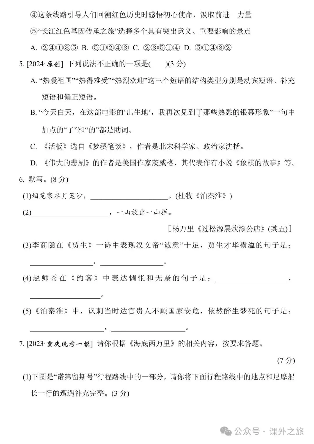 冬冬老师今天给大家整理了统编版语文七年级(下册)第六单元测试卷(含答案),请各位家长打印给孩子练练,更好的巩固所学的知识点!
