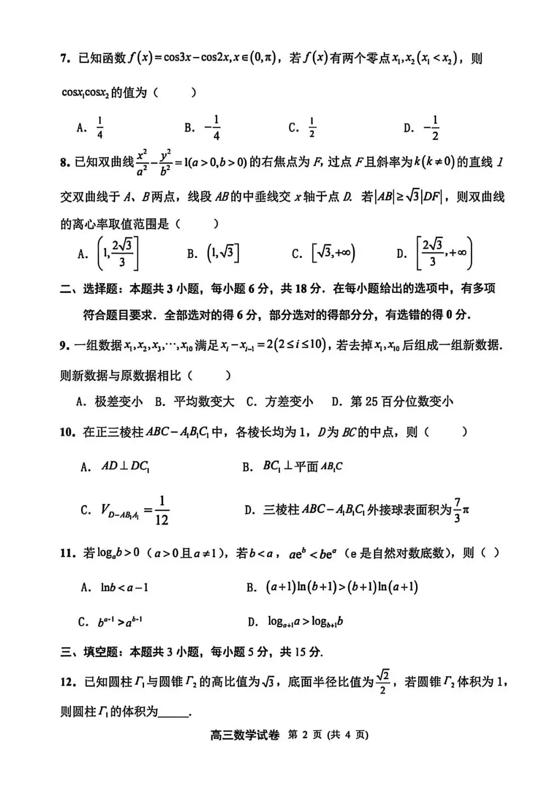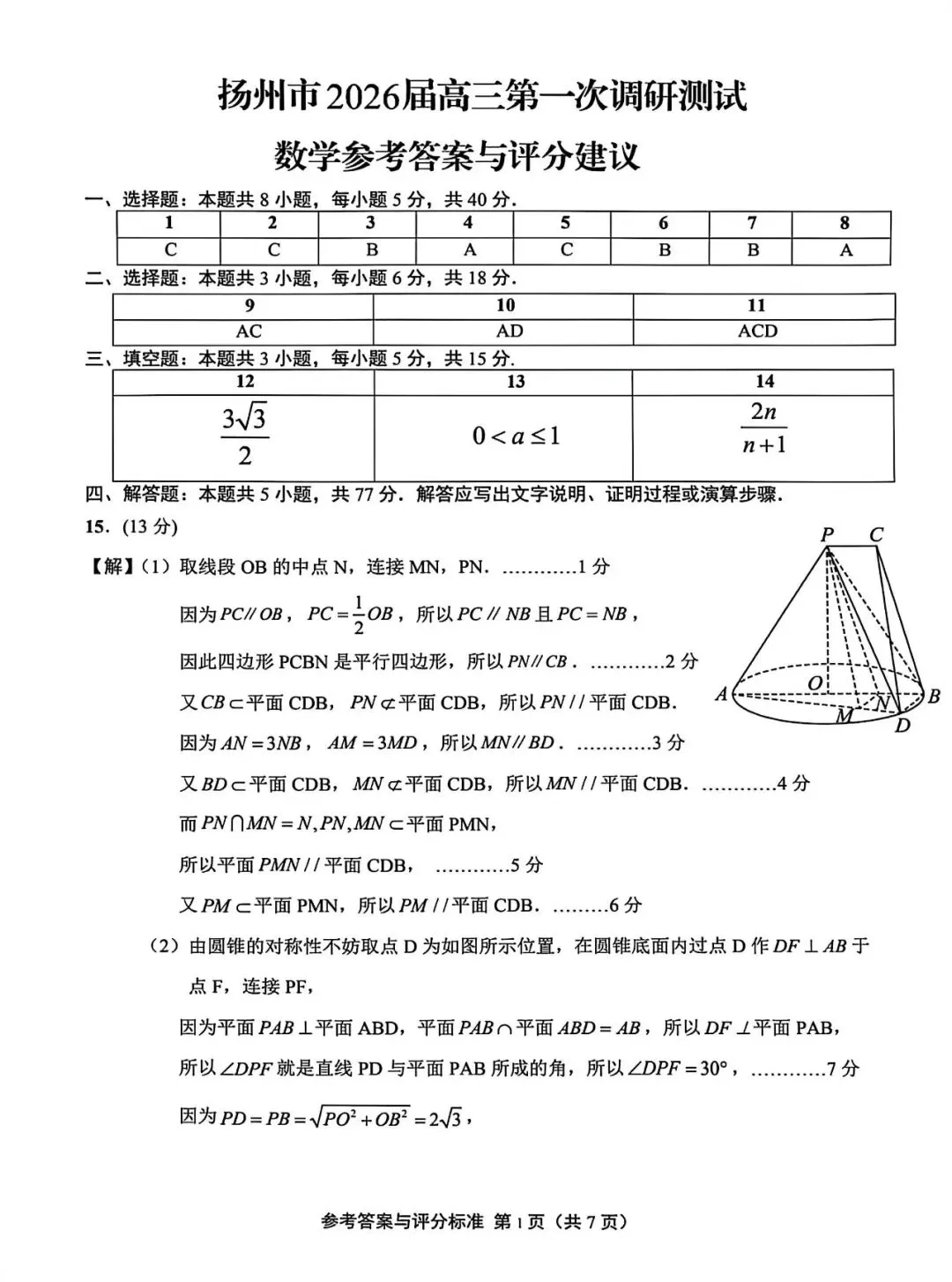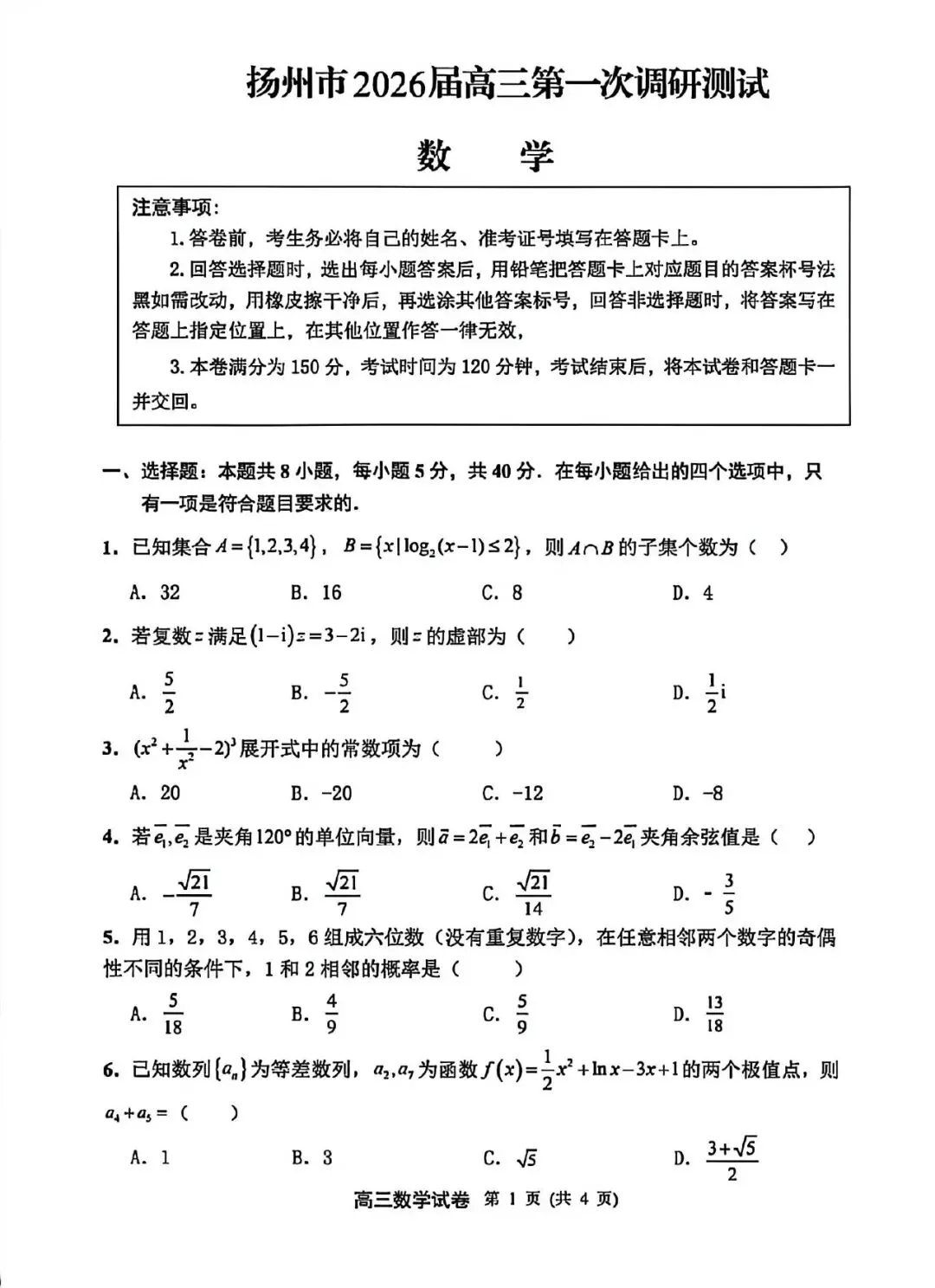 扬州市2026届高三第一次调研测试数学试卷,涵盖高考数学核心考点,适合考前冲刺练习。