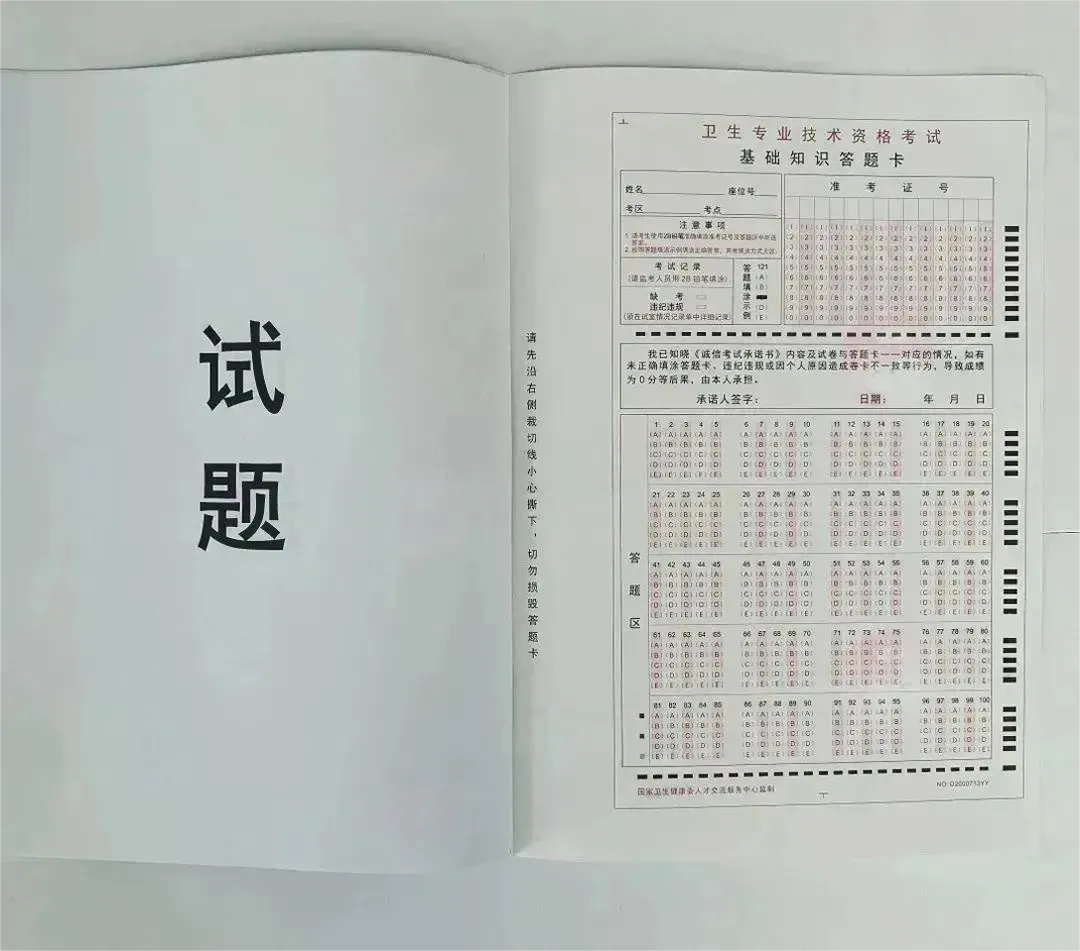 卫生专业技术资格考试护理学初级(师)专业纸笔考试采用“卷卡合一”方式,为帮助大家提前熟悉试卷形式,确考试顺利进行,请报考该专业的考生仔细阅读以下内容: