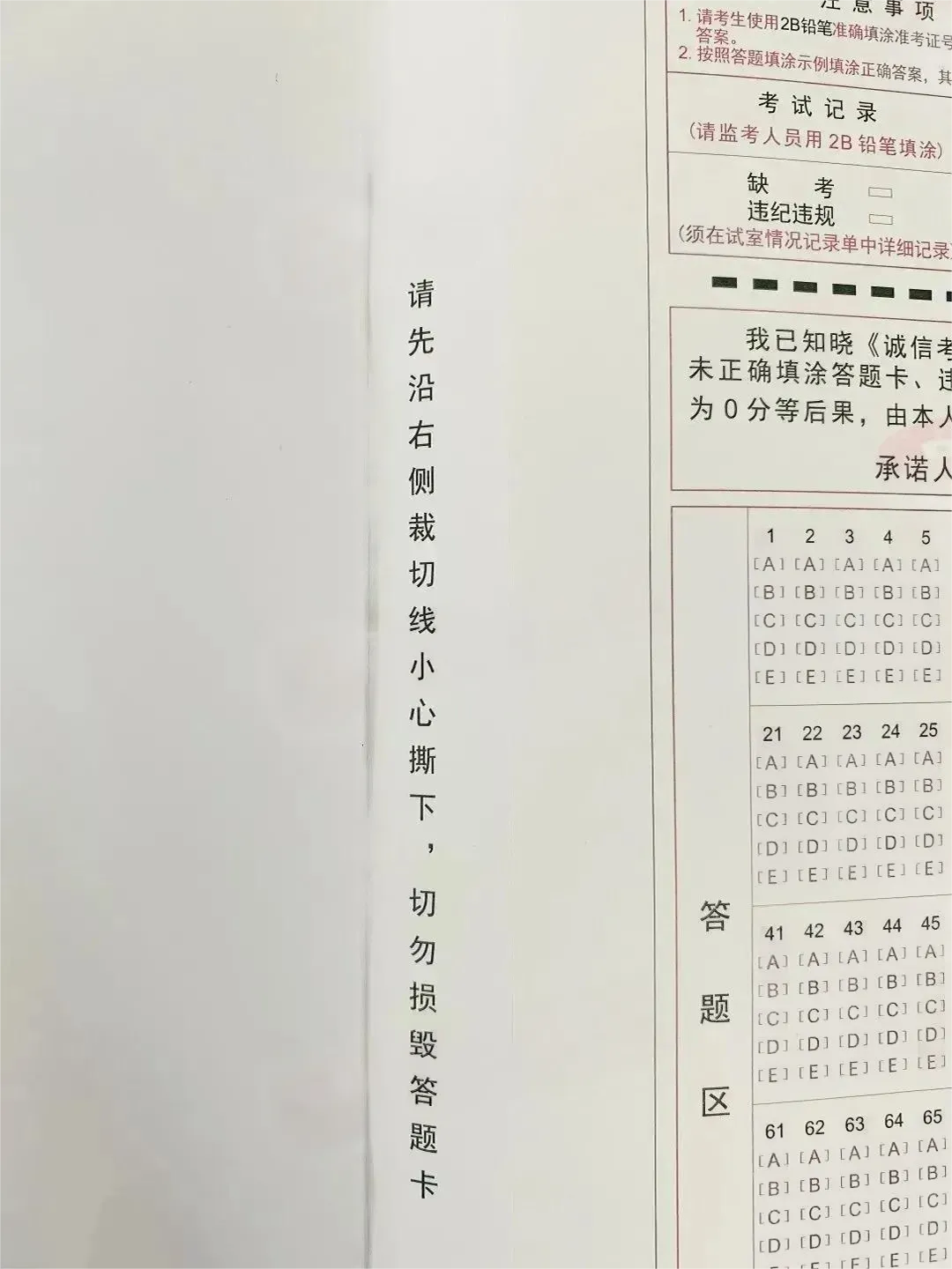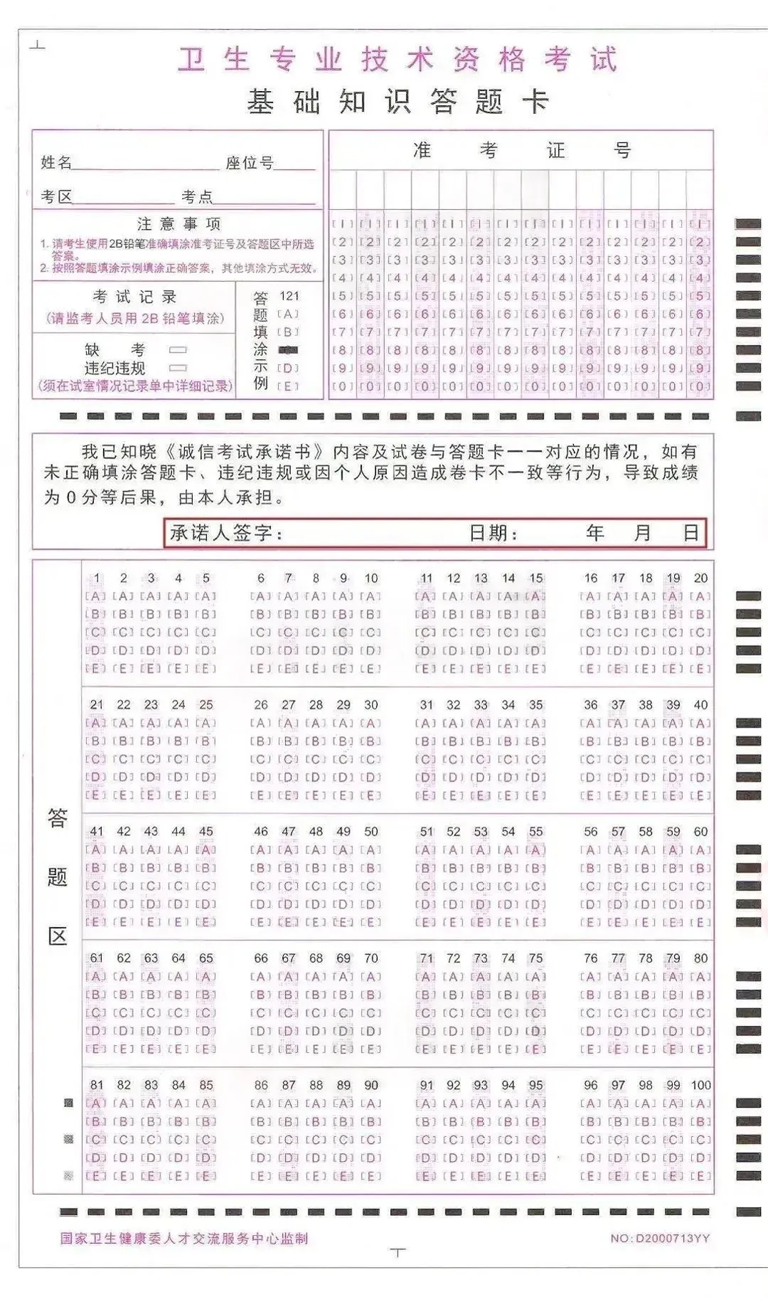 阅读完“考生诚信考试承诺书”后在答题卡相应位置(红框处)签字确认!