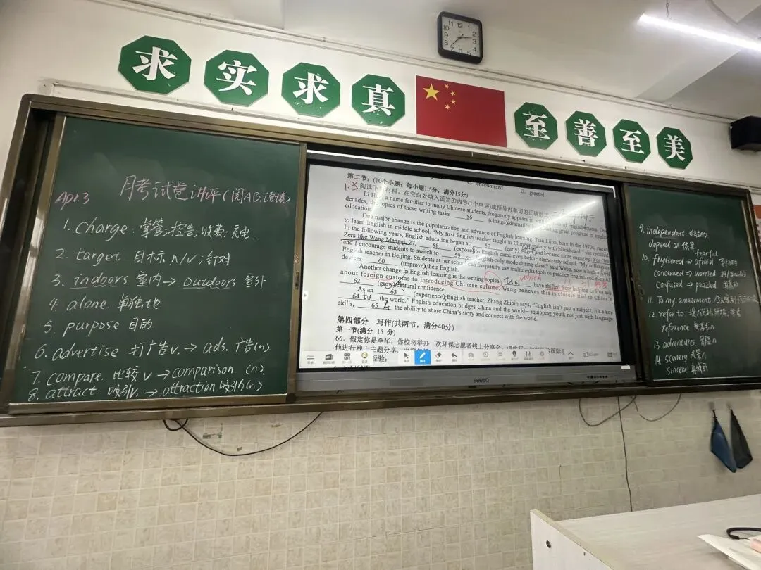 没有,则点我事先安排好的讲题同学。这篇文章有点难度,所以没有同学举手,这时我就安排了王同学上来黑板讲题。王同学从定位法,同义替换法从文中找到了答案,并且还细致地分析了其他错误选项。一致好评,全班掌声,我再提问检测其他同学是否听懂,再次巩固。