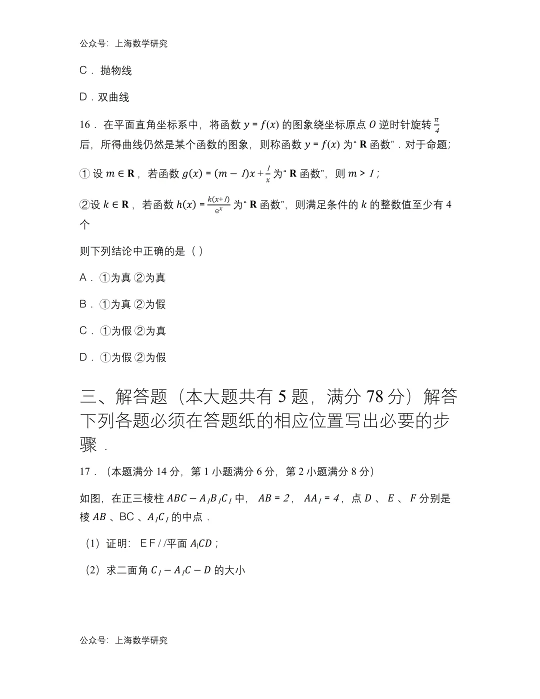上海市市西外国语学校高二下学期数学月考试卷及答案(2026.3)