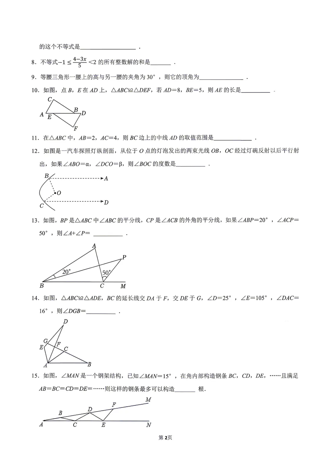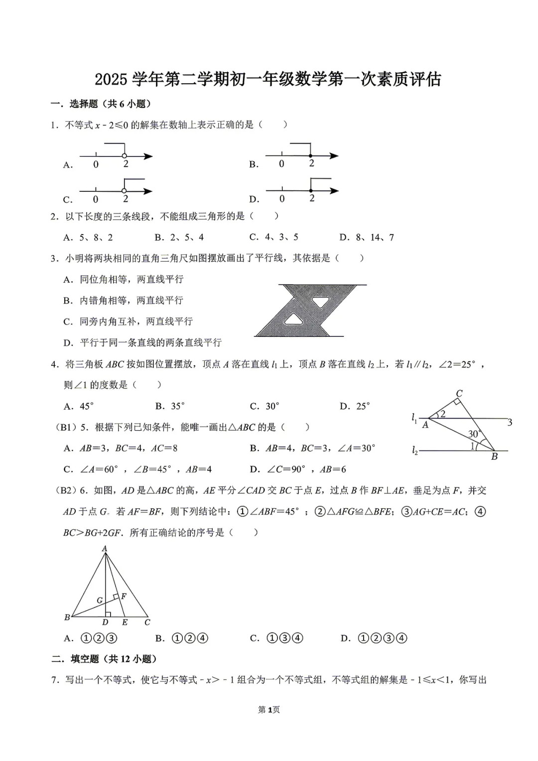 >上海中学东校七年级数学素养评估试卷(2026.4)