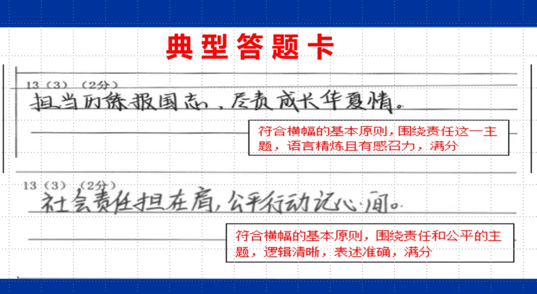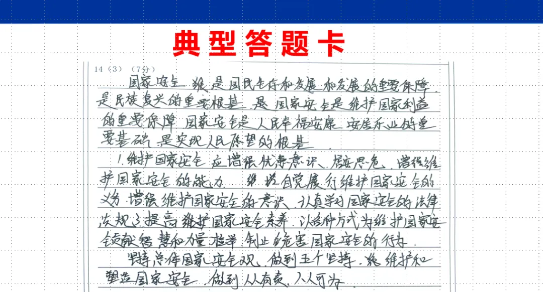 其次,要准备好典型答题卡,让学生有榜样示范(如丹毕、张老师);对典型卡分层,指明优点、不足,给学生启发。
