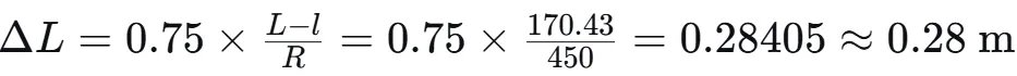 答: 曲线转角为 21∘41′59′′,外股钢轨伸长量为0.28m,五大桩位置如上图所示。
