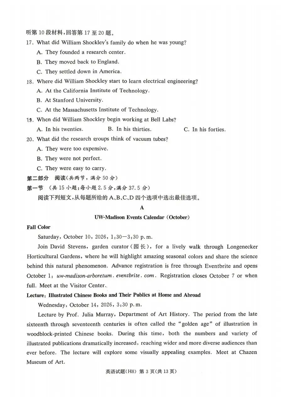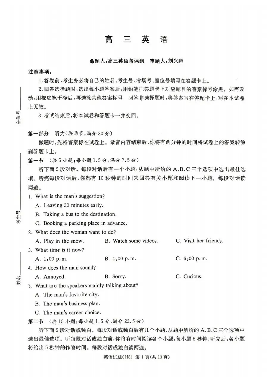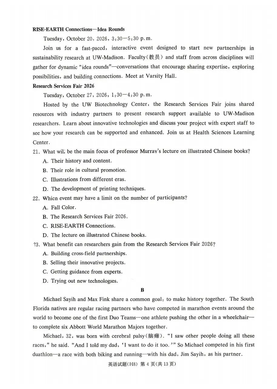 >雅礼中学2026届高三月考试卷八英语试卷