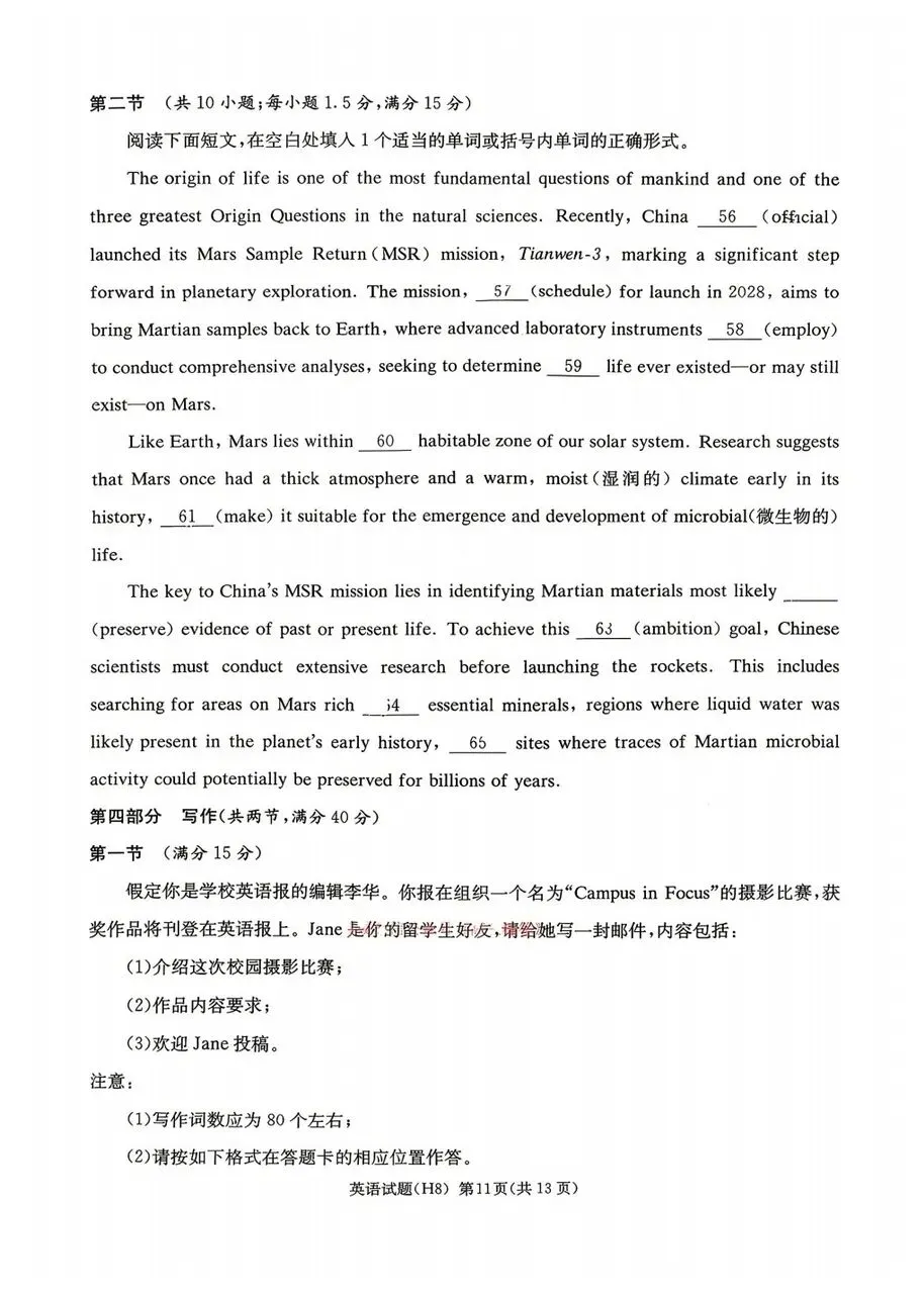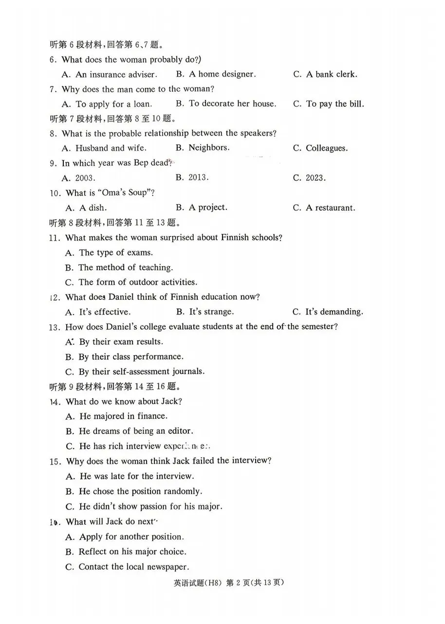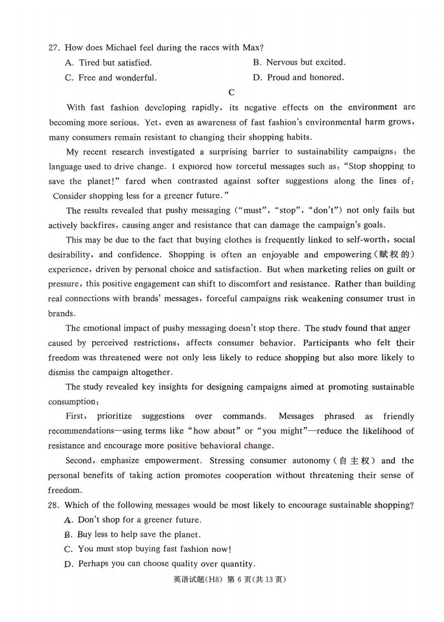 >雅礼中学2026届高三月考试卷八英语试卷