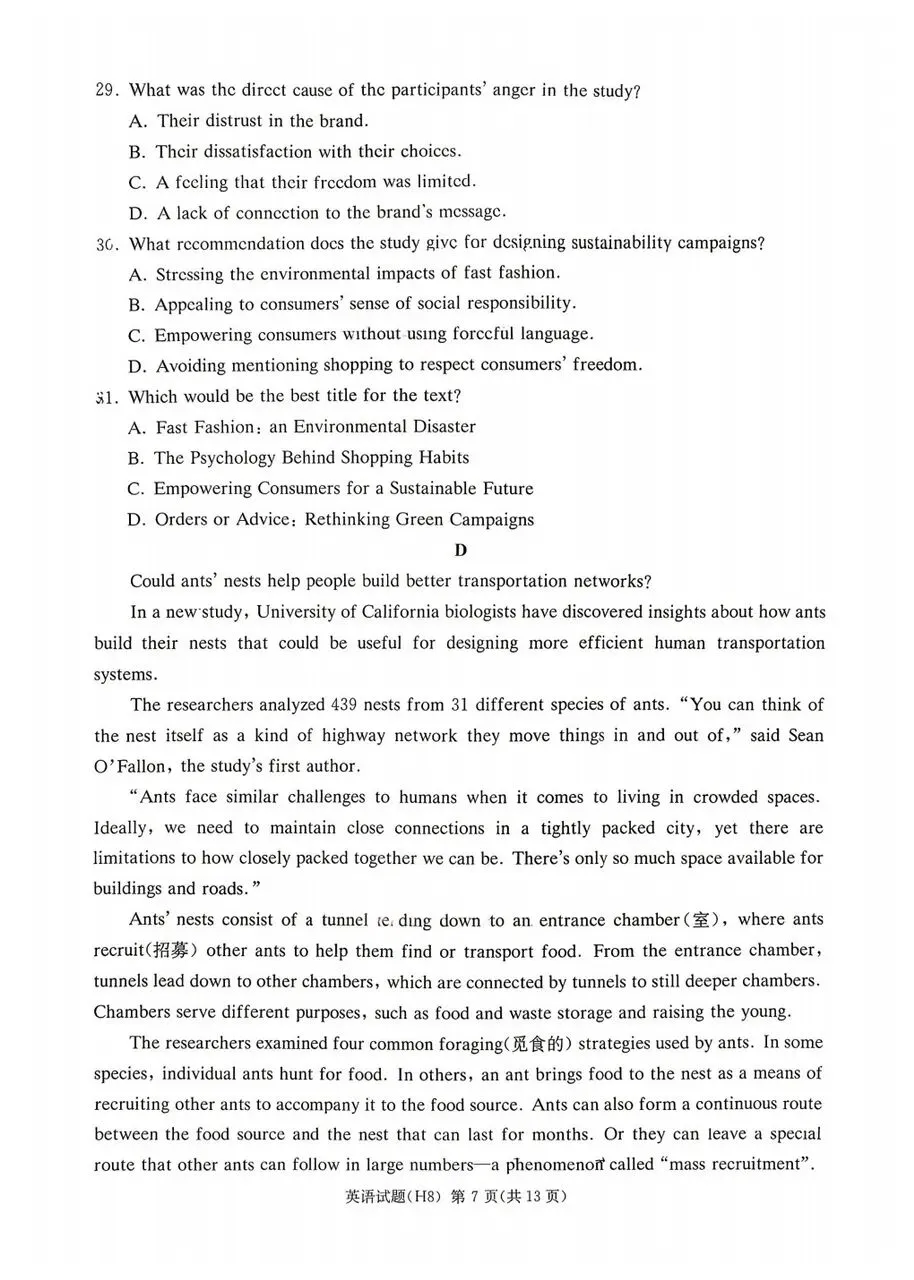 雅礼中学2026届高三月考试卷八英语试卷