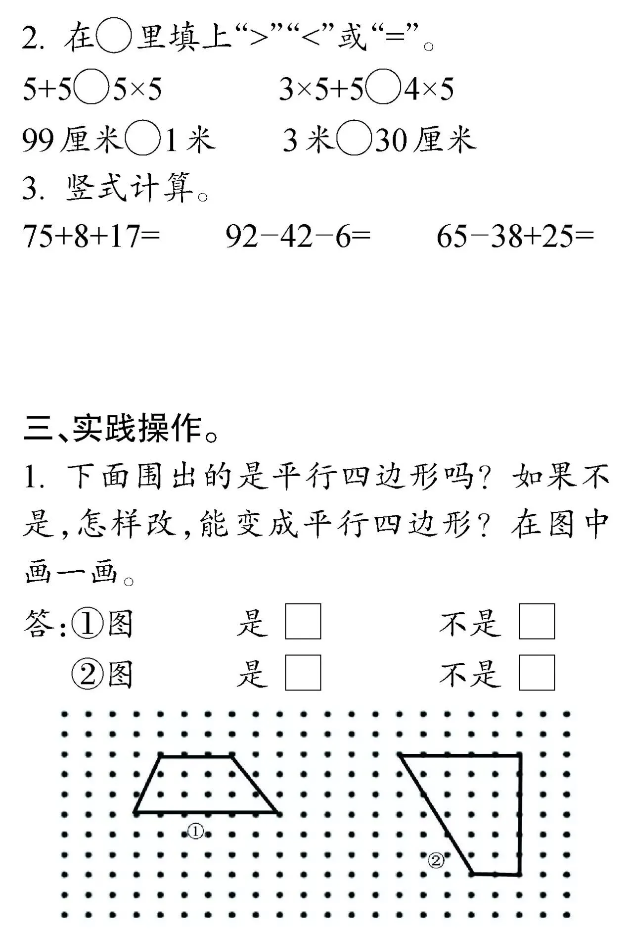 让孩子们试着做一做,发现数学学习中哪些知识点掌握得比较薄弱,在期末复习中,可以有针对性地查漏补缺,为期末考试做准备!